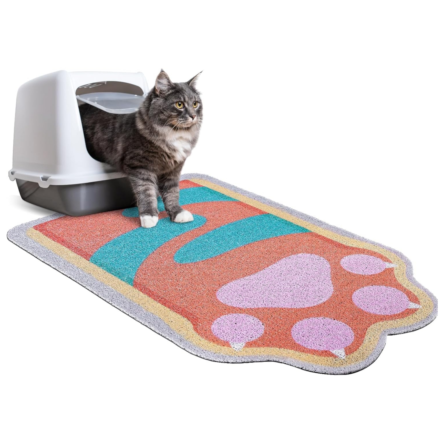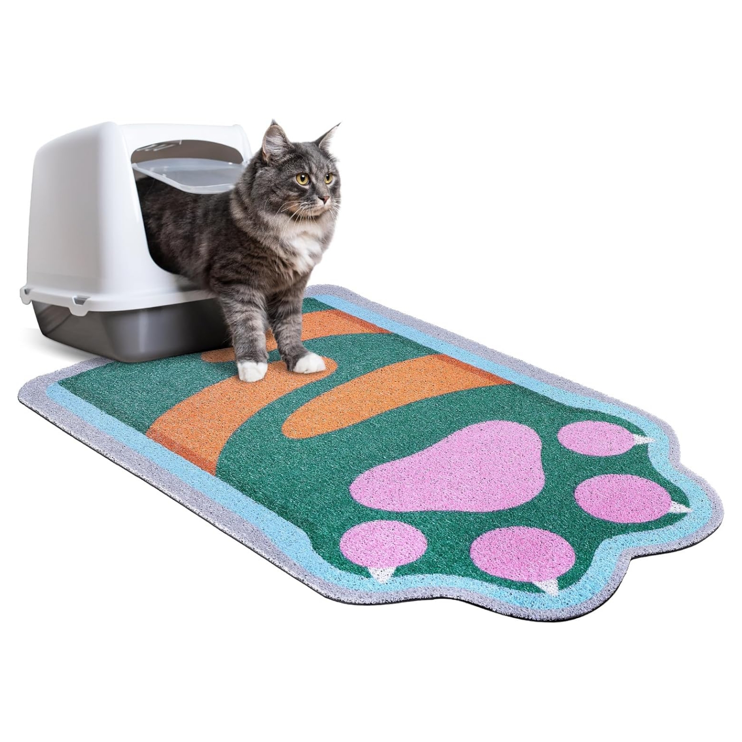Recoge eficazmente la arena para gatos: la alfombra para arena para gatos tiene un alcance lo suficientemente grande como para no solo atrapar bien la arena para gatos caída, sino que también proporciona un buen lugar para que el gato descanse y juegue.