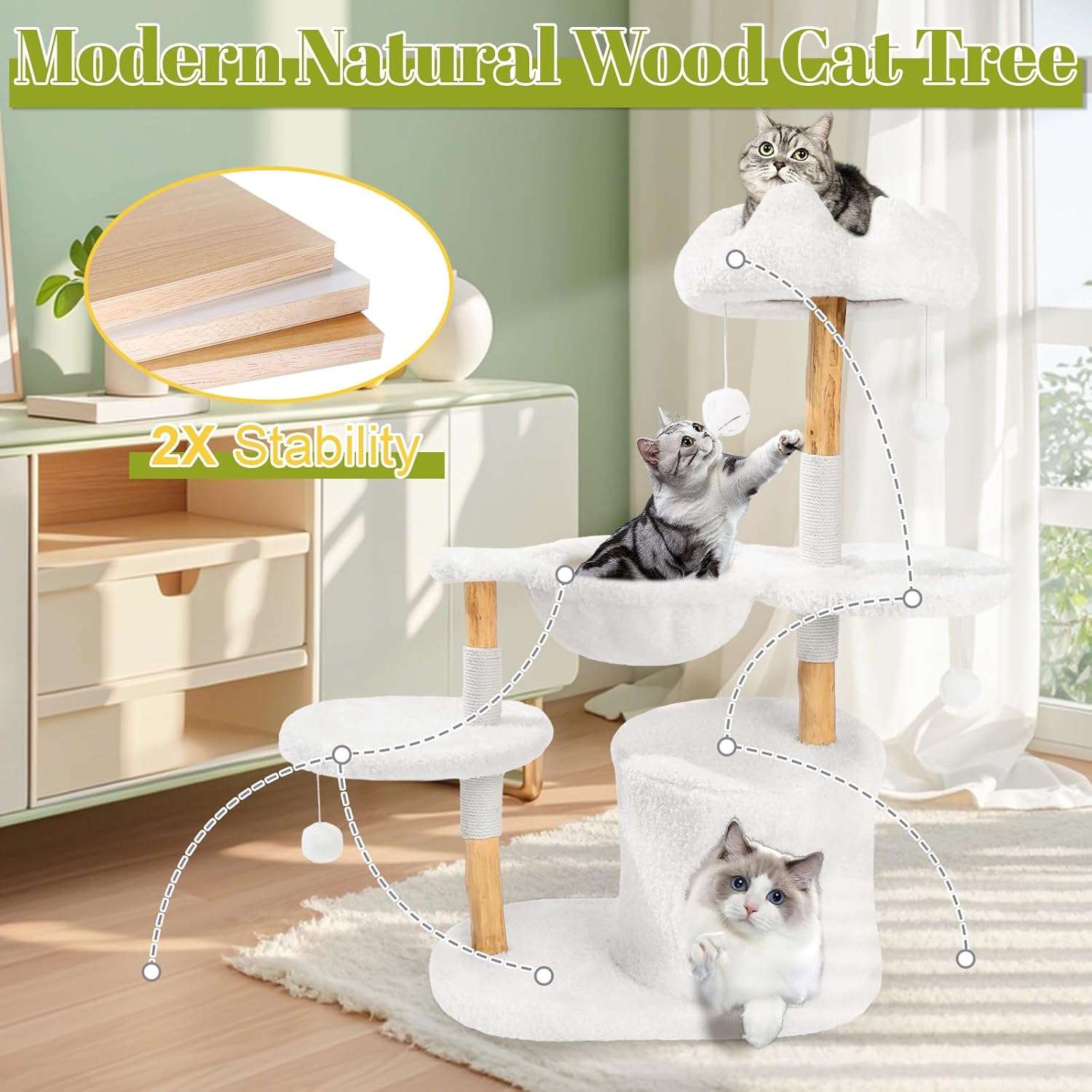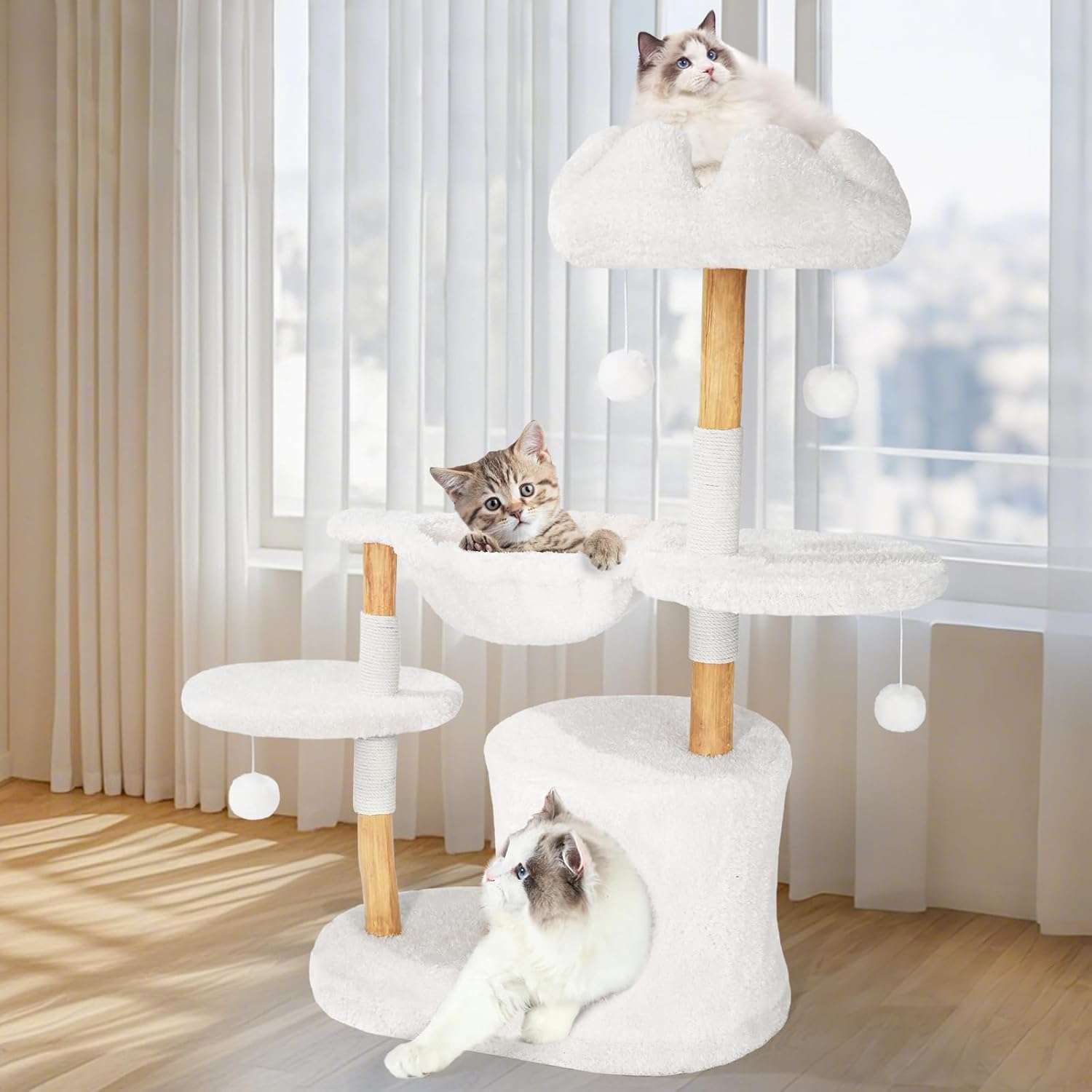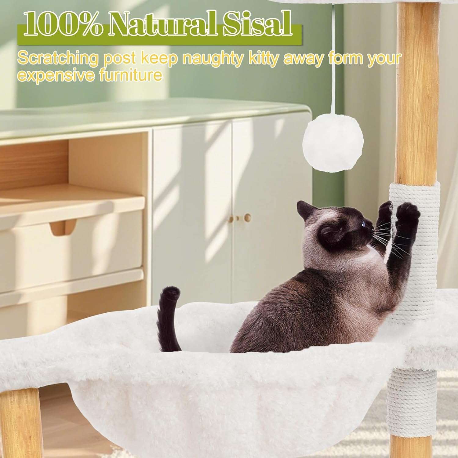 Juego y Facil Montaje: Accesorios Interactivos: Incluye pompones de juguete y dos postes curvos envueltos en sisal muy resistentes para satisfacer los instintos de rascado. Instalacion Sencilla: Viene con un manual detallado, que es muy facil de instalar e incluye todos los accesorios y herramientas. Ademas, incluye garantia de calidad.