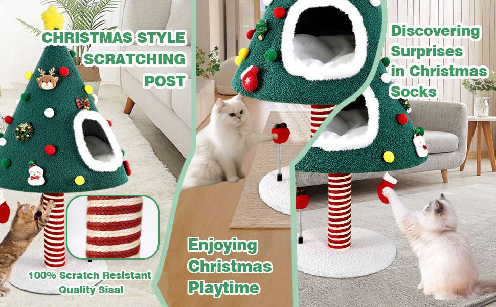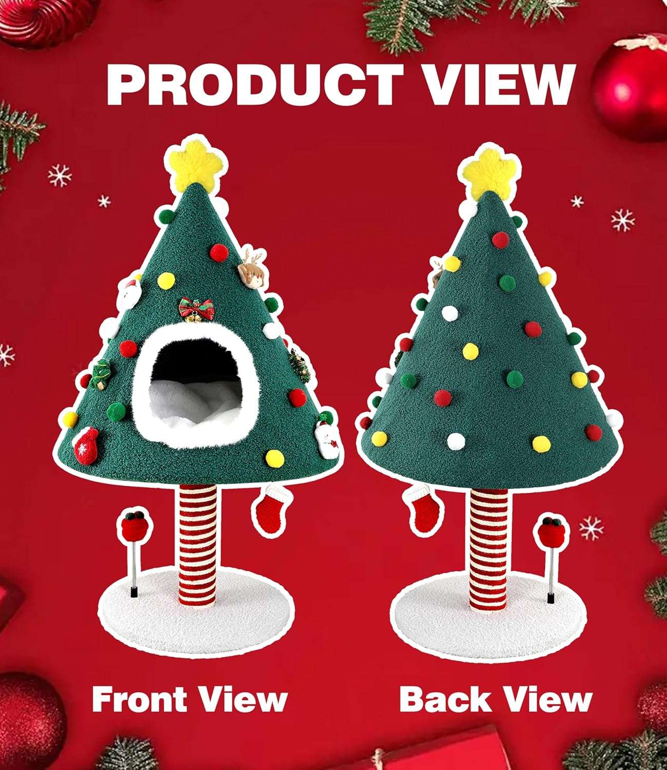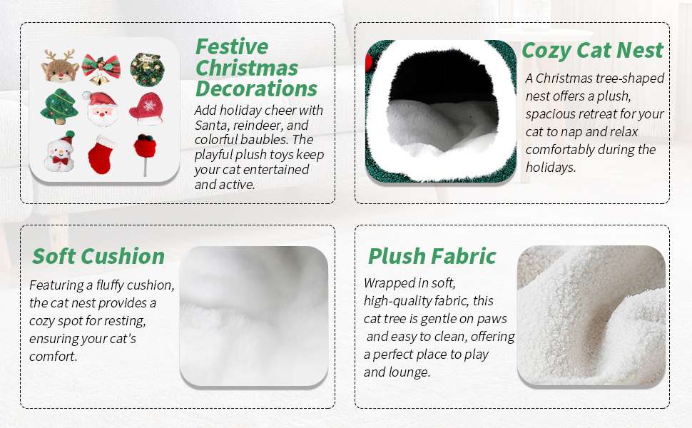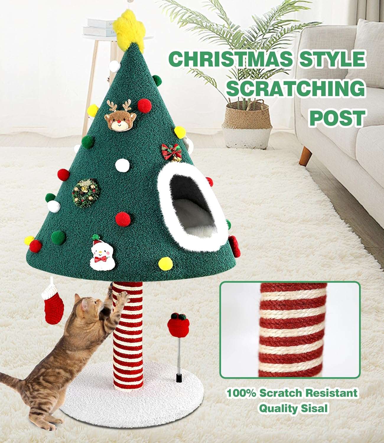 Celebra las fiestas con este original Árbol Rascador con Temática Navideña. Adornado con Papá Noel, renos y adornos, no solo es una divertida zona de juegos, sino también una hermosa decoración que mejora el ambiente festivo de tu hogar.