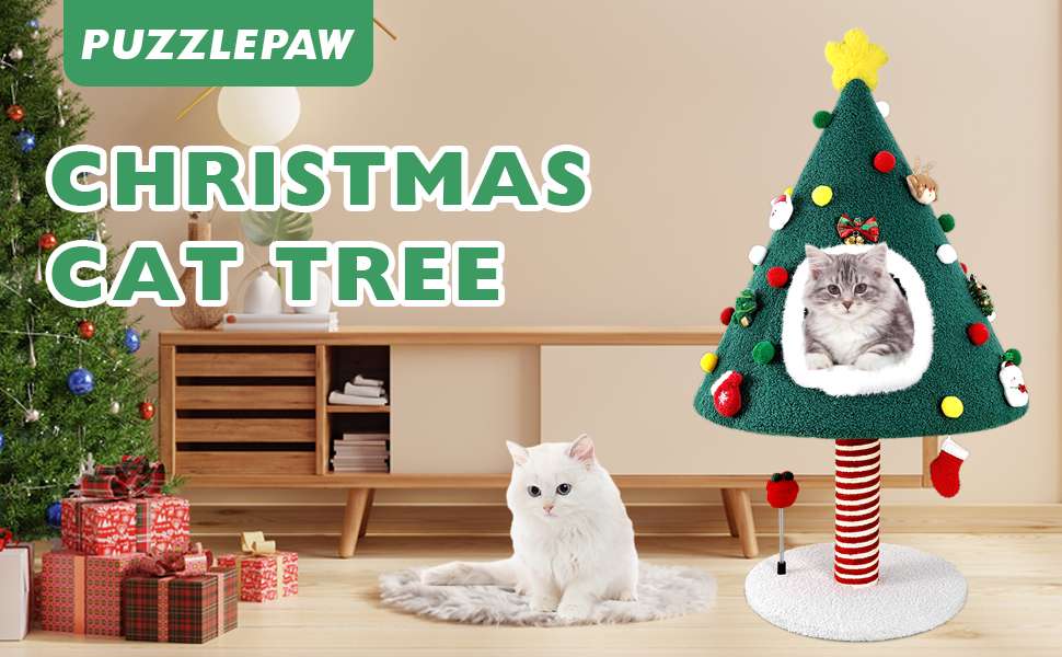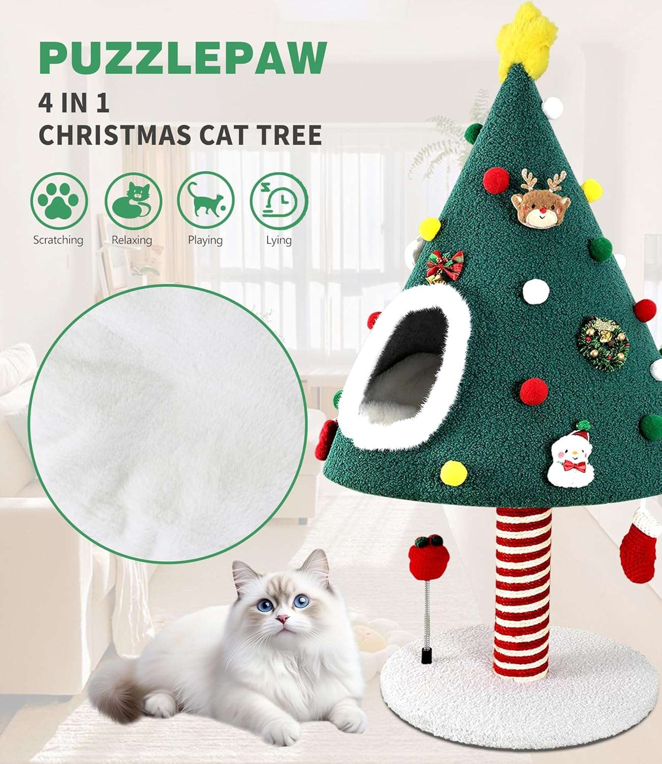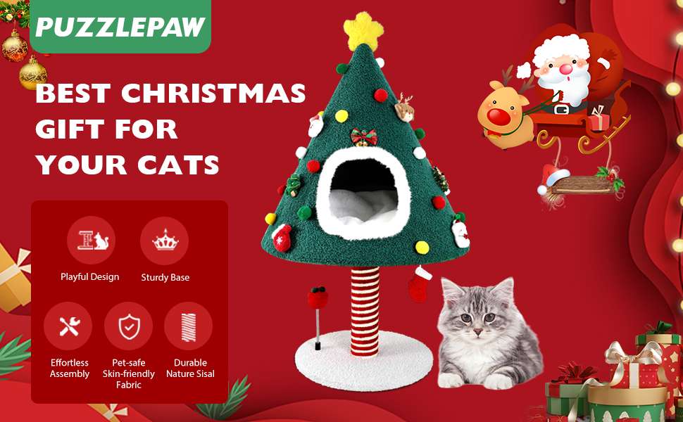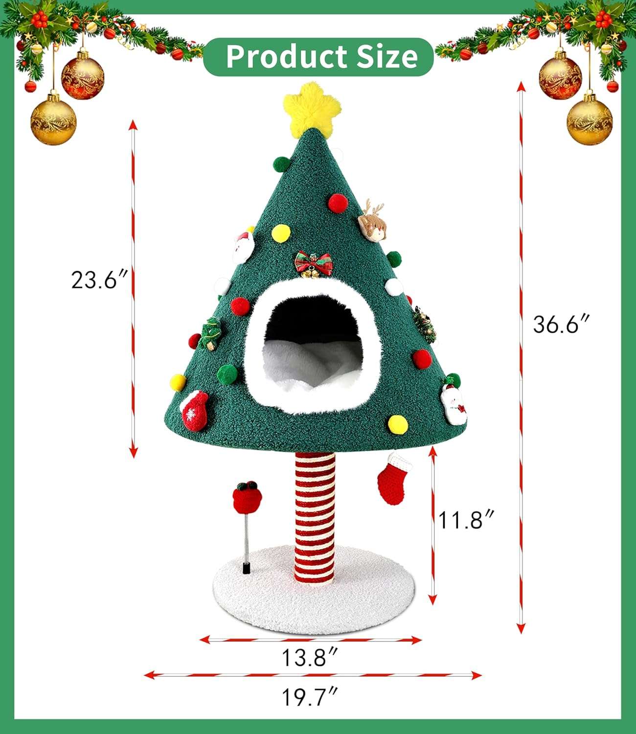 Celebra las fiestas con este original Árbol Rascador con Temática Navideña. Adornado con Papá Noel, renos y adornos, no solo es una divertida zona de juegos, sino también una hermosa decoración que mejora el ambiente festivo de tu hogar.