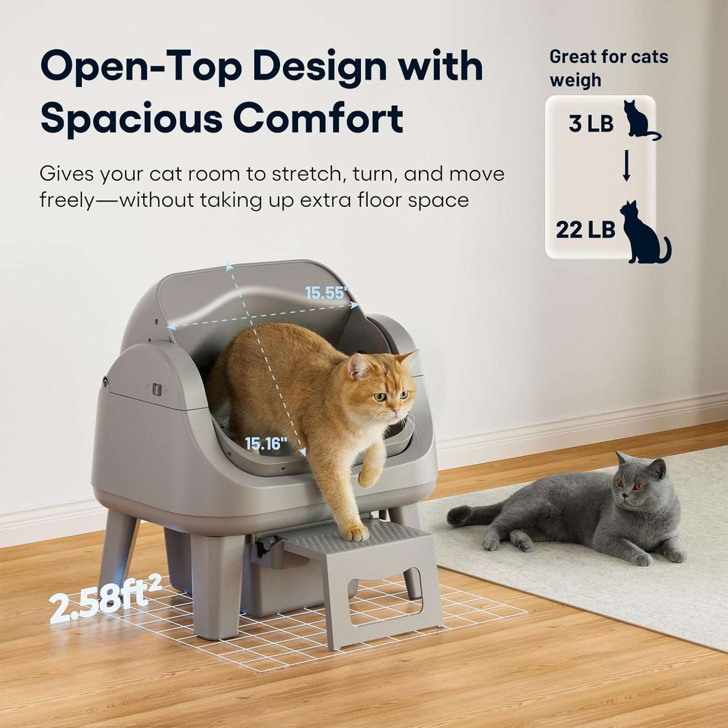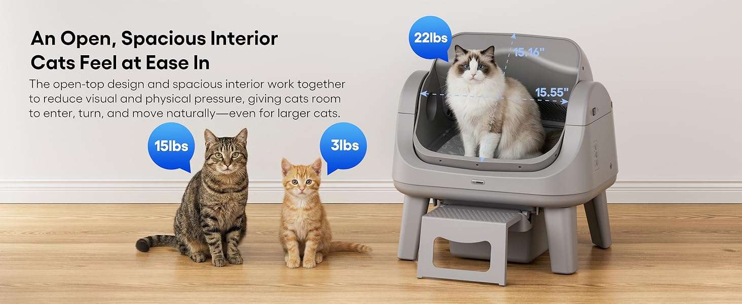 Esta caja de arena automatica y autolimpiante con diseño abierto de la marca PetPivot es la opcion mas confiable y buscada en Chile para mantener la higiene de sus felinos Su estructura cuenta con dimensiones exactas de 54 centimetros de largo 40 centimetros de ancho y 55 centimetros de alto ofreciendo un espacio comodo y un escalon de acceso dedicado ideal para gatos mayores o gatitos pequeños reduciendo la tension al entrar