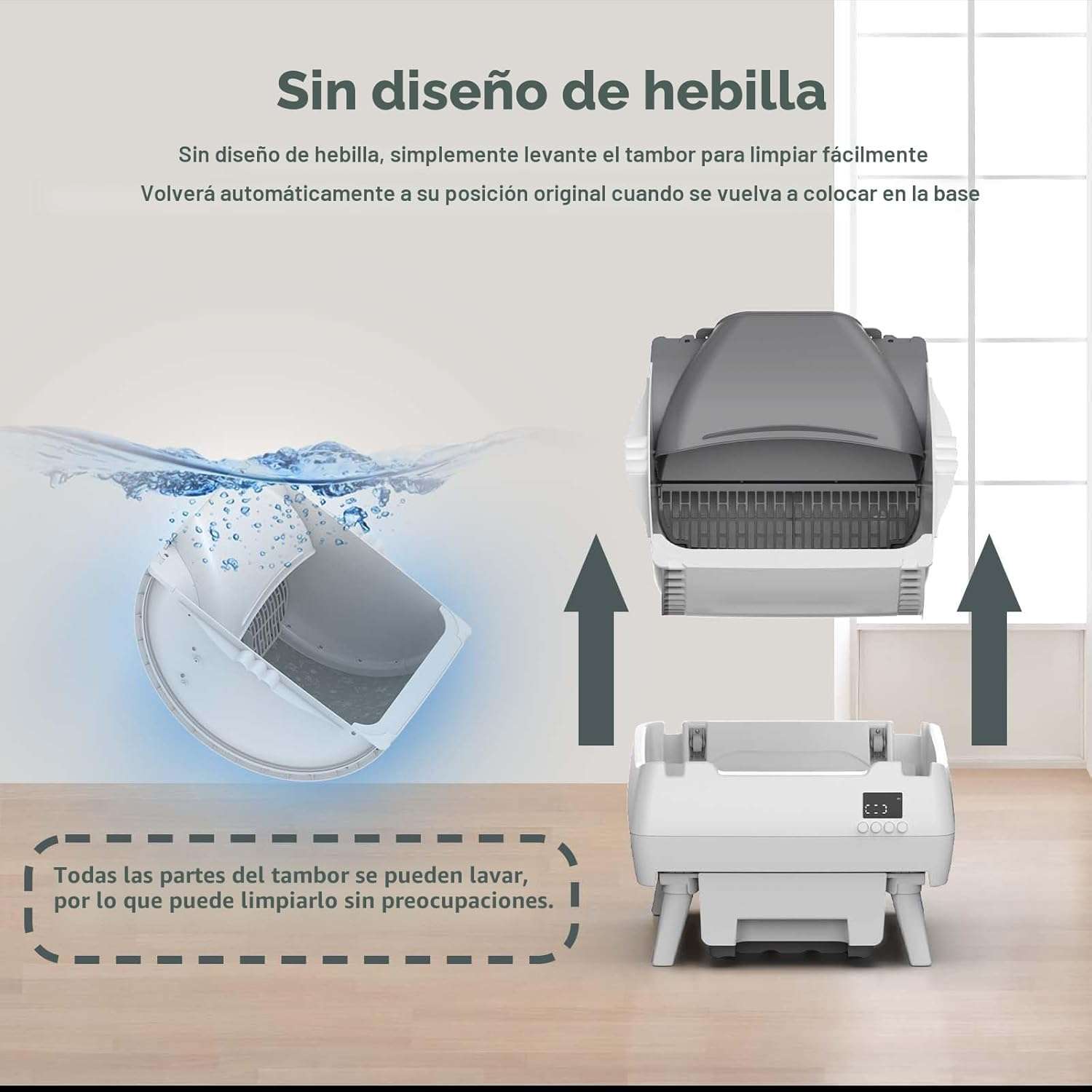 El mantenimiento de este baño inteligente es sumamente facil ya que no se necesita ningun desmontaje complicado para su limpieza diaria Usted simplemente debe levantar el tambor interior para lograr un aseo rapido y eficaz asegurando un espacio altamente higienico todos los dias Ademas su funcionamiento silencioso garantiza la tranquilidad de su hogar sin interrupciones molestas