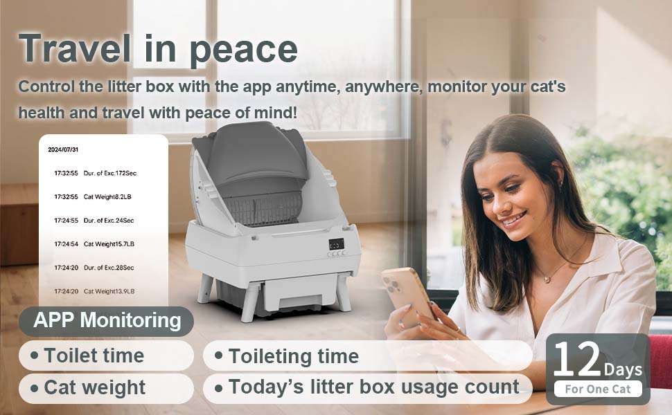 Mediante su control de aplicacion inteligente usted puede administrar y supervisar este arenero de forma remota utilizando su red wifi Esta tecnologia intuitiva le proporciona actualizaciones en tiempo real y un control total sobre el programa de limpieza logrando ademas un monitoreo de salud inteligente para su mascota directamente desde su telefono celular