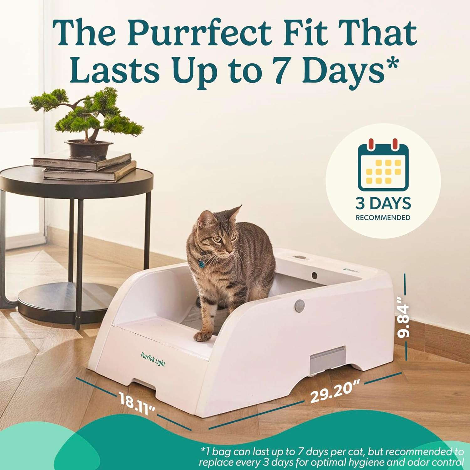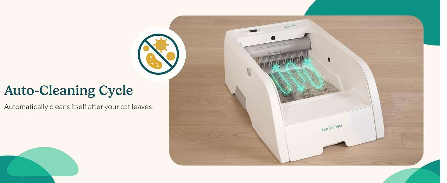El innovador sistema de rastrillo inteligente traslada automaticamente los desechos a un contenedor sellado despues de cada uso manteniendo el arenero totalmente limpio y fresco todos los dias de la semana Para garantizar un excelente control de olores el cajon de residuos cerrado y las bolsas de carbono incluidas bloquean los olores desagradables al instante logrando que su casa se mantenga siempre acogedora incluso si tiene varios felinos