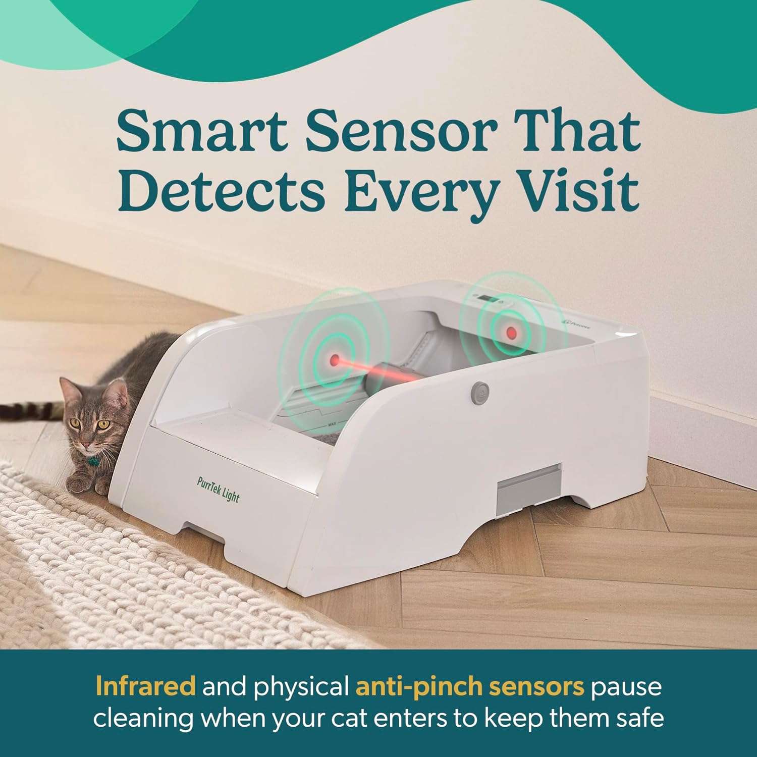 Este avanzado equipo es totalmente seguro para su mascota ya que incorpora sensores infrarrojos duales y un interruptor de seguridad antipellizcos que detiene el mecanismo al instante si el gato ingresa durante el proceso de limpieza Su funcionamiento es sumamente silencioso emitiendo un maximo de 45 decibeles siendo mas discreto que una conversacion normal Ademas el contenedor la bandeja y el rastrillo se desarman en pocos segundos para un lavado rapido con jabon suave manteniendo todos los componentes electronicos secos y protegidos para asegurar una larga vida util