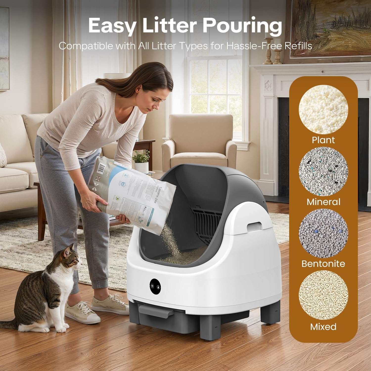 Este arenero automatico y autolimpiante es la opcion mas buscada en Chile para mantener la higiene de su felino de forma inteligente Su diseño cuenta con dimensiones exactas de 54x50x55 centimetros ofreciendo una gran capacidad interior y un amplio cubo de basura de 9 litros que soporta hasta 15 dias de uso continuo sin necesidad de recoleccion diaria brindando un hogar fresco y limpio