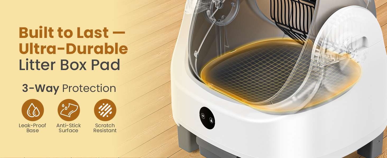 El equipo se activa automaticamente un minuto despues de que su mascota sale de la estructura separando los desechos y depositandolos en el contenedor hermetico Para garantizar un ambiente purificado este modelo incorpora una defensa contra olores de triple capa Su carcasa resistente evita fugas la alfombra impermeable antiadherente detiene la acumulacion de residuos y el basurero sellado con junta de silicona bloquea los malos olores por completo