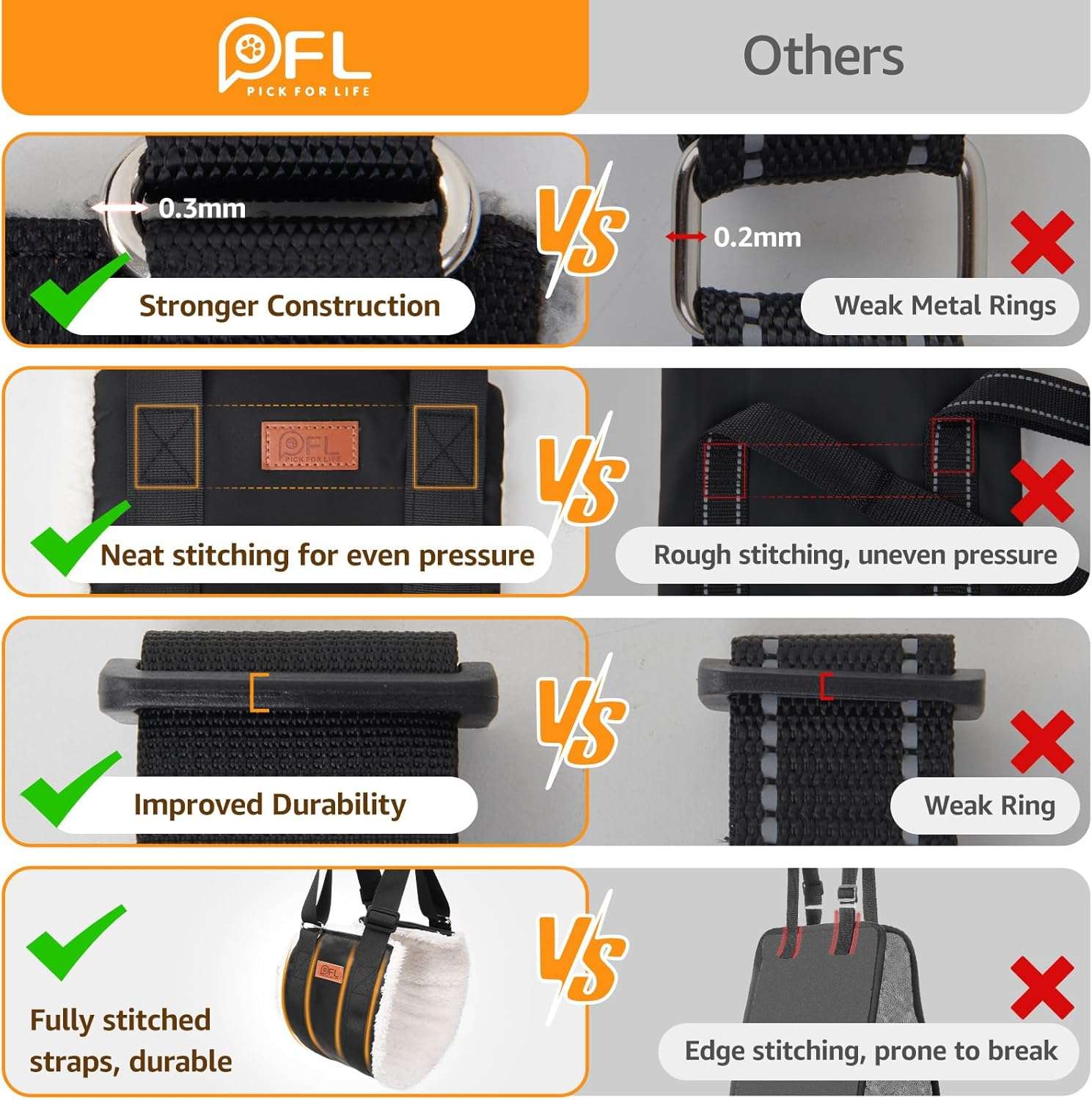 Asas Acolchadas: Pensado en el dueño, las asas tienen un acolchado especial que permite levantar perros pesados sin que las correas se claven en tus manos.