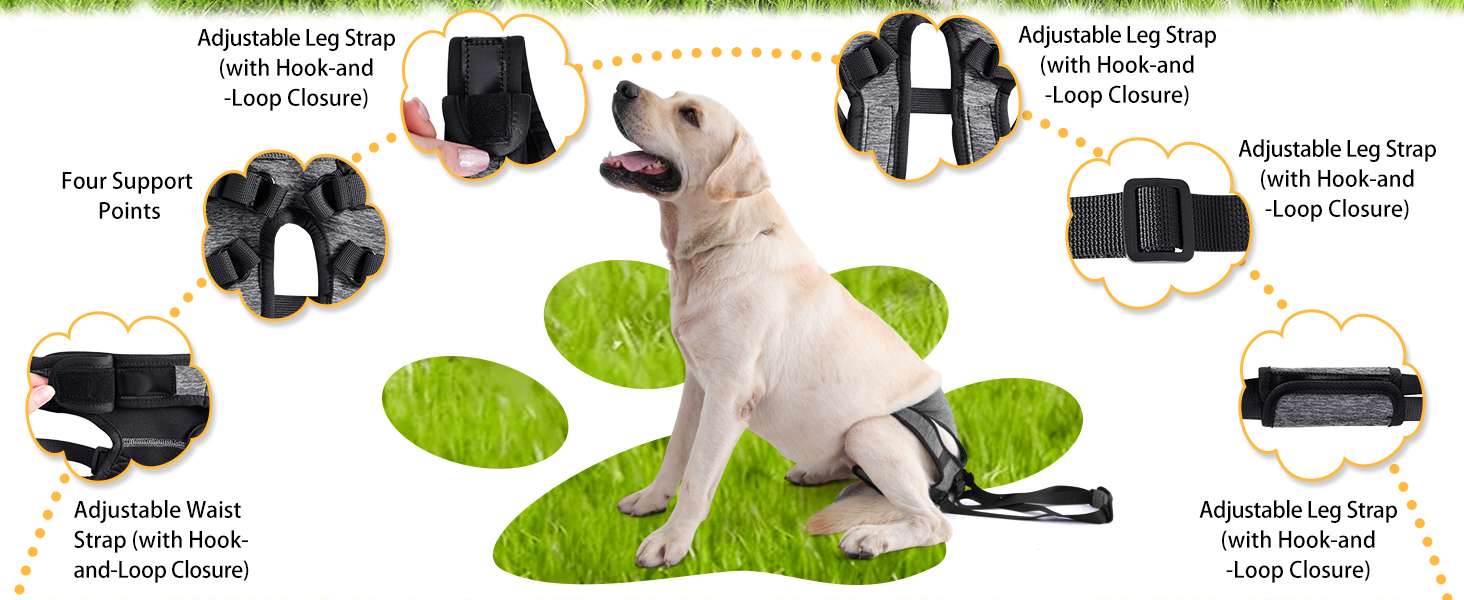 100% Personalizable: Correas ajustables en abdomen, piernas y mango de transporte. Se adapta a la forma única de tu perro.