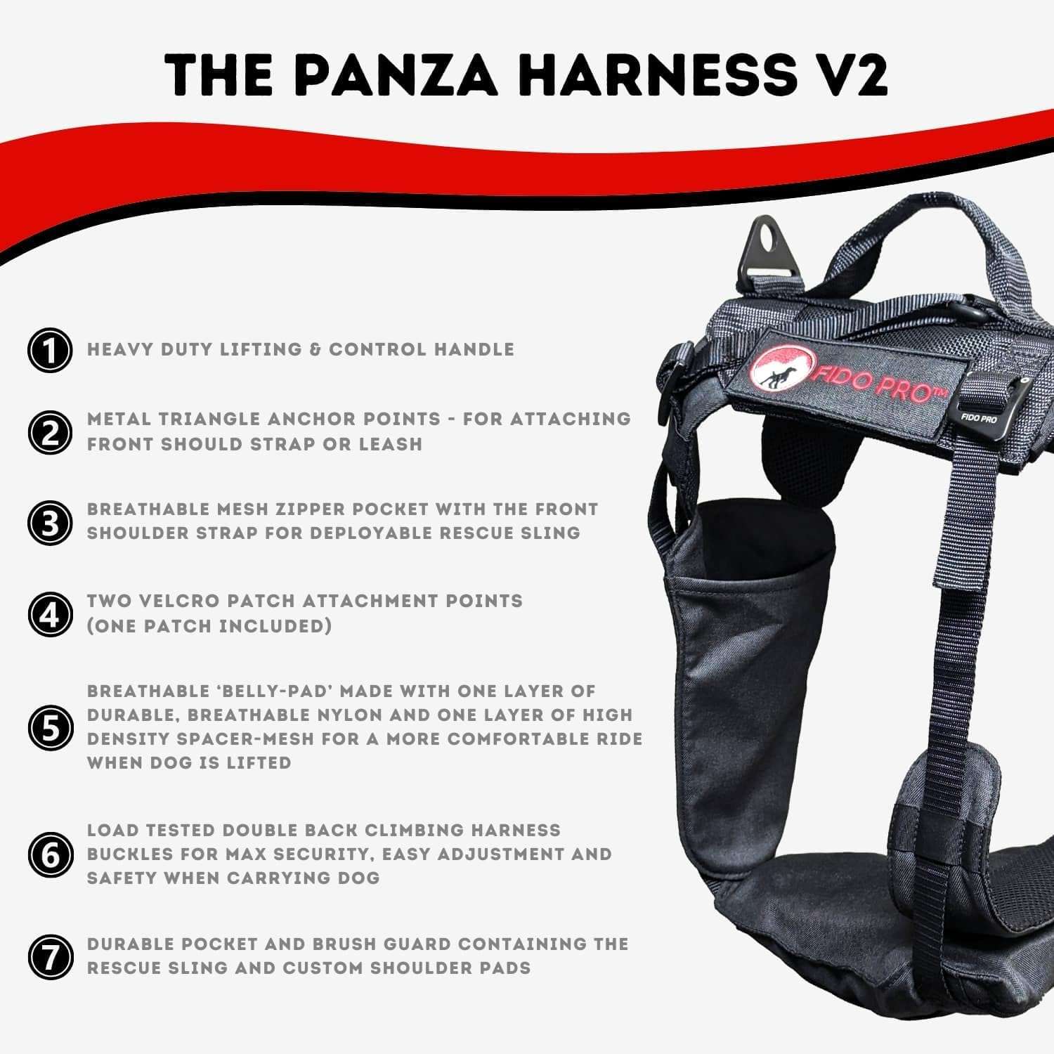 El Arnés Panza V2 no es solo un accesorio de paseo, es una pieza de equipo tecnico de alta montaña para dueños de perros aventureros. Con una patente de utilidad exclusiva, este es el unico arnes en el mercado que se convierte instantaneamente en un cabestrillo de rescate integrado, permitiendole cargar a su perro de forma segura en caso de lesion o agotamiento en terrenos dificiles.
