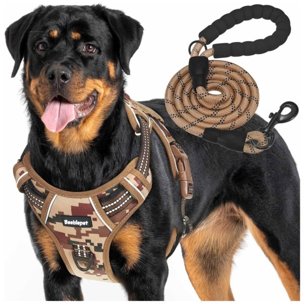 Arnés resistente para perro: especialmente diseñado para perros potentes y robustos. El arnés de alta resistencia está hecho de nailon duradero, reforzado con costuras resistentes y equipado con dos anillos triangulares resistentes