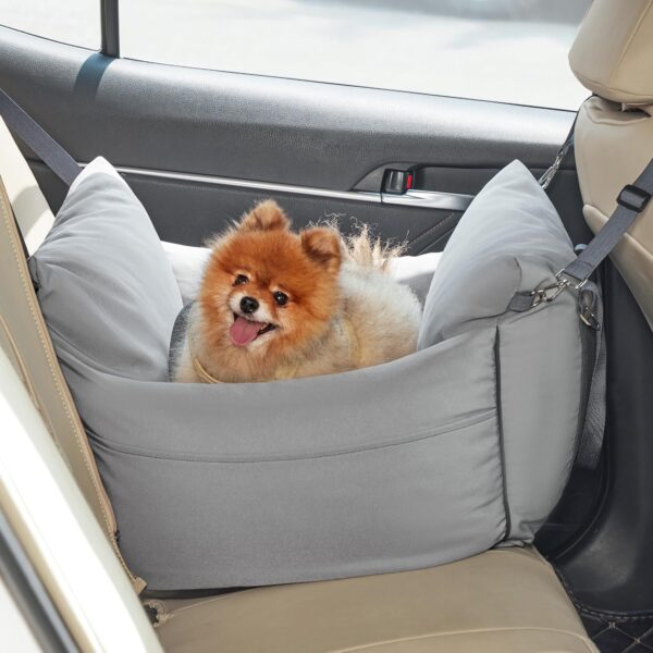 Fácil de limpiar: con su diseño totalmente desmontable y cremalleras deslizantes integradas, limpiar este asiento de coche para mascotas es muy fácil. El relleno está empaquetado en bolsas extraíbles, que se pueden sacar y limpiar fácilmente. Además, la funda es lavable a máquina, por lo que es aún más cómoda de mantener. La parte inferior del asiento elevador es impermeable, mientras que el resto de la tela es resistente al agua, lo que garantiza una fácil limpieza y protección contra derrames o accidentes.
