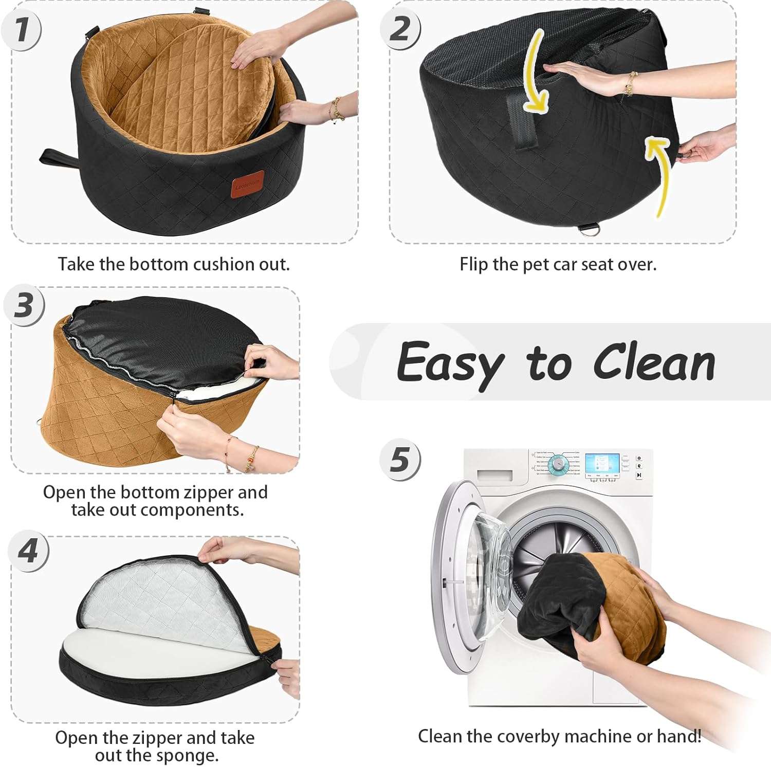 Doble Correa de Seguridad: Incluye 2 correas internas para enganchar al arnés de tu perro, manteniéndolo seguro dentro del asiento y evitando que distraiga al conductor.