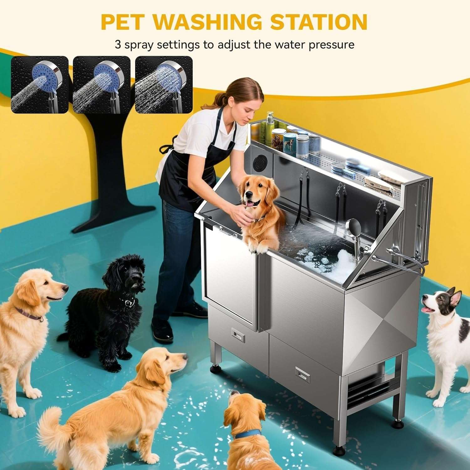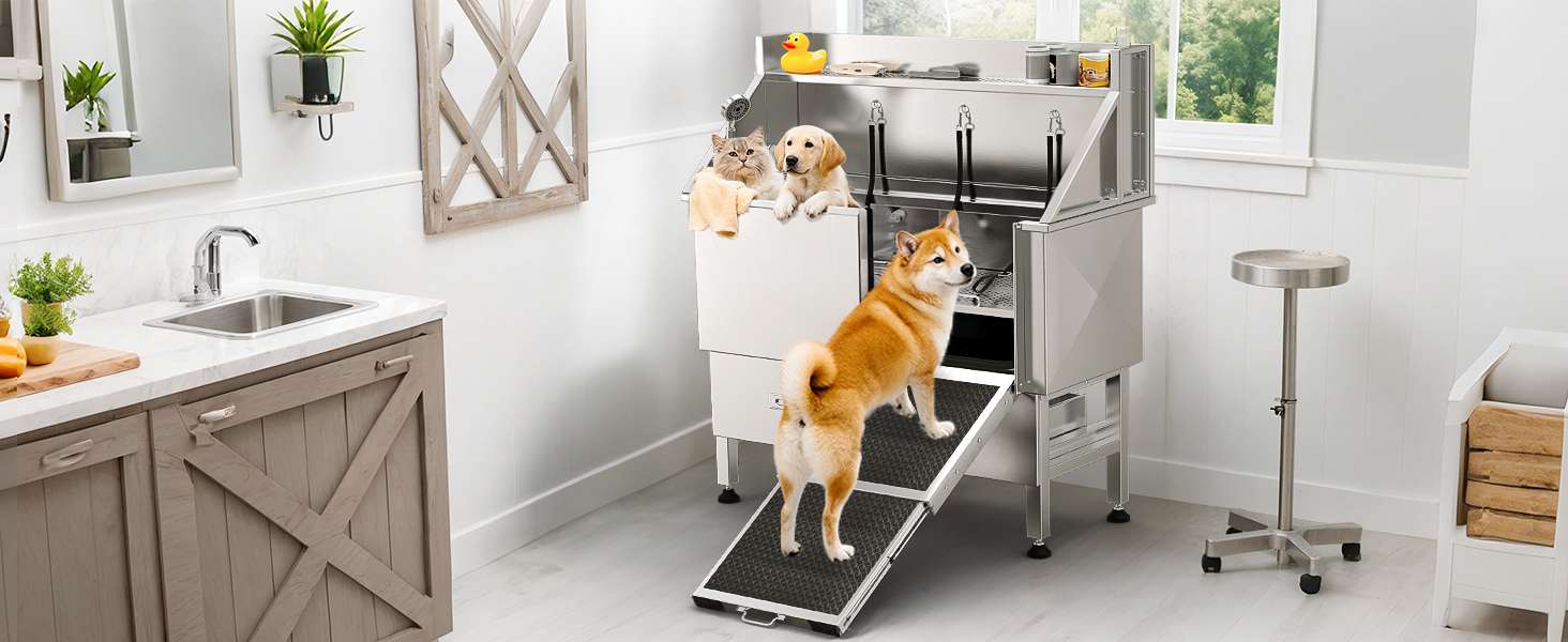 Estación de Lavado Canina de Acero Inoxidable 304 con Almacenamiento Doble y Diseño Limpio