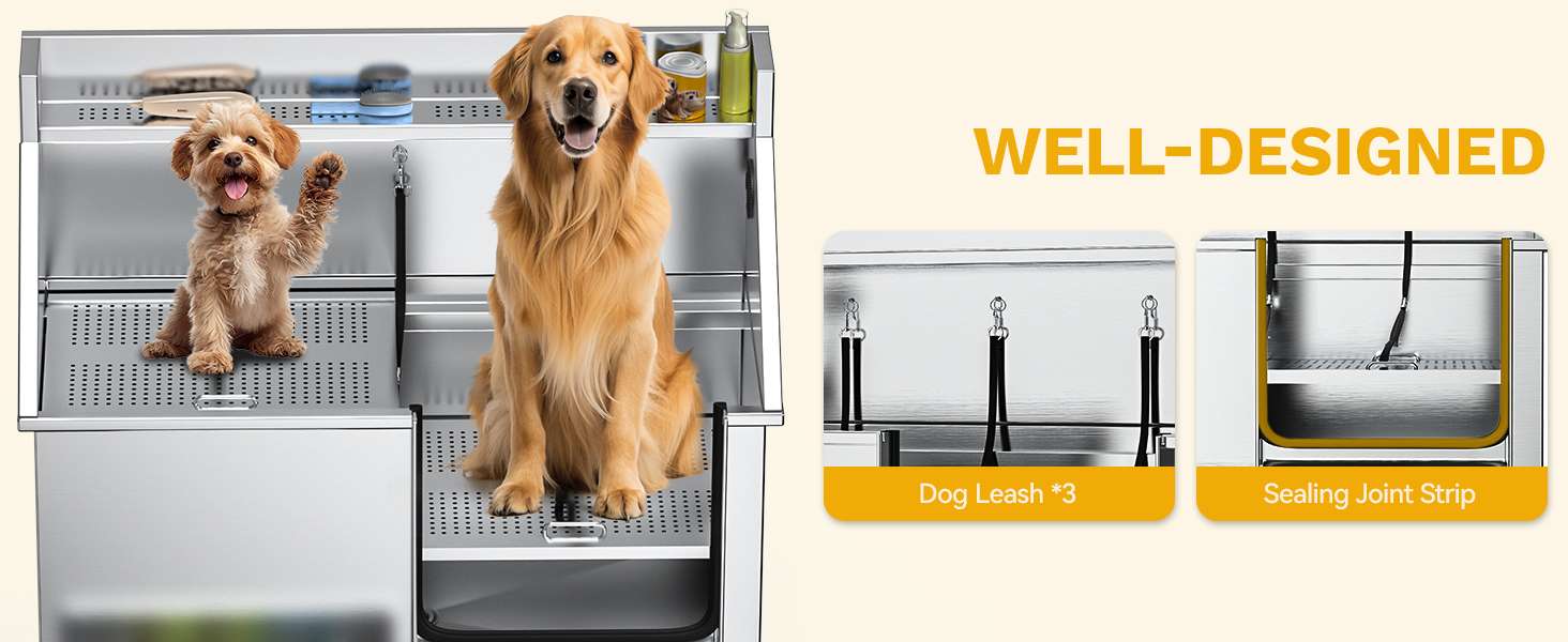 Costuras Selladas: Incorpora sellos de goma en las uniones para evitar cualquier fuga o filtración, garantizando un área de trabajo limpia incluso con perros que se sacuden mucho al bañarse.
