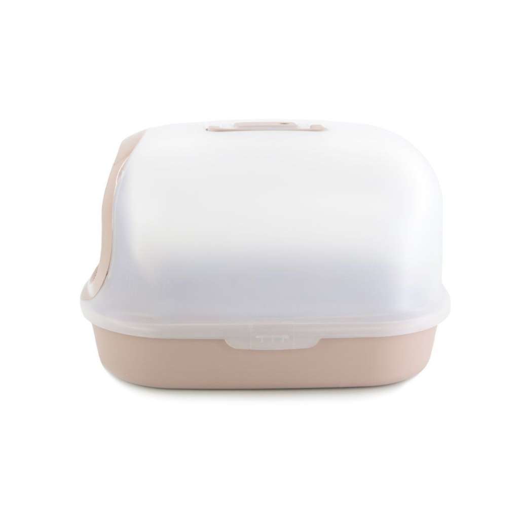 Diseno Cerrado y Base Elevada Fabricado con plastico de alta resistencia y totalmente lavable este arenero cuenta con una base profunda para que coloques la cantidad ideal de arena Su puerta abatible frontal le entrega a tu mascota un espacio tranquilo y privado mientras tu entorno se mantiene libre de suciedad
