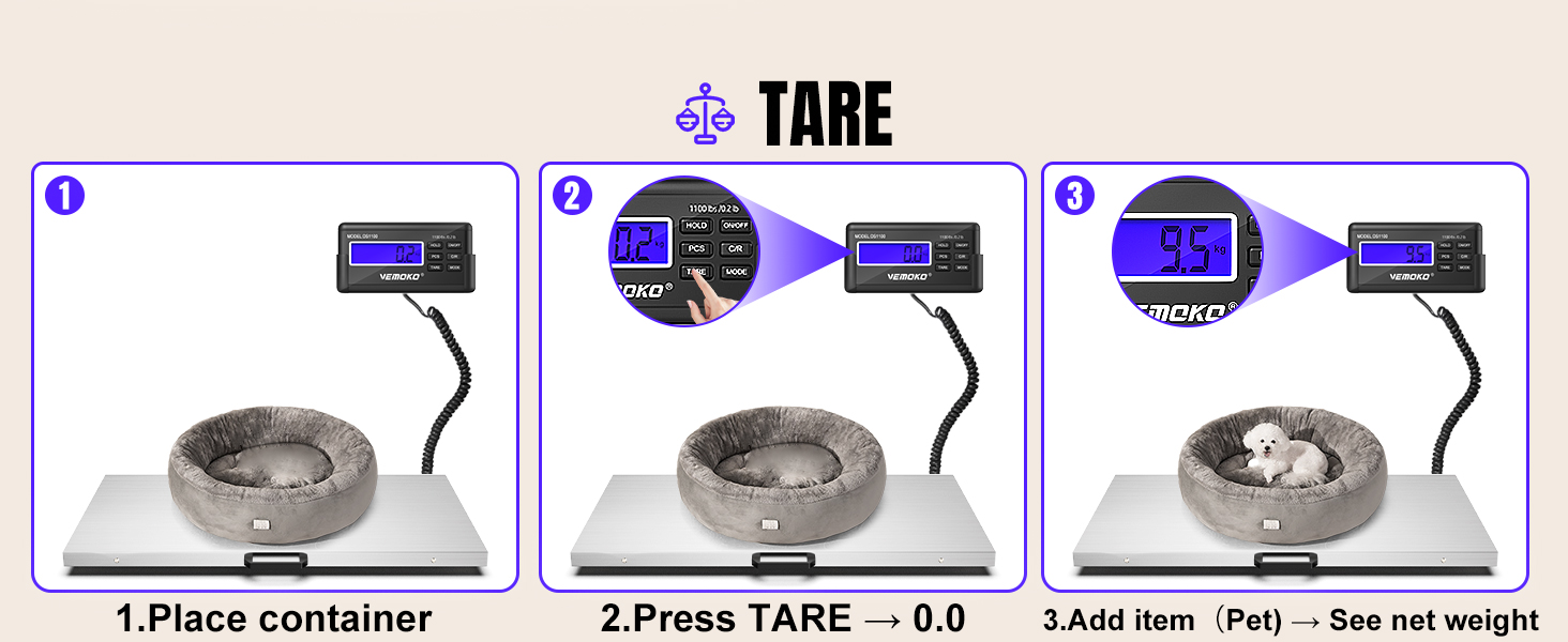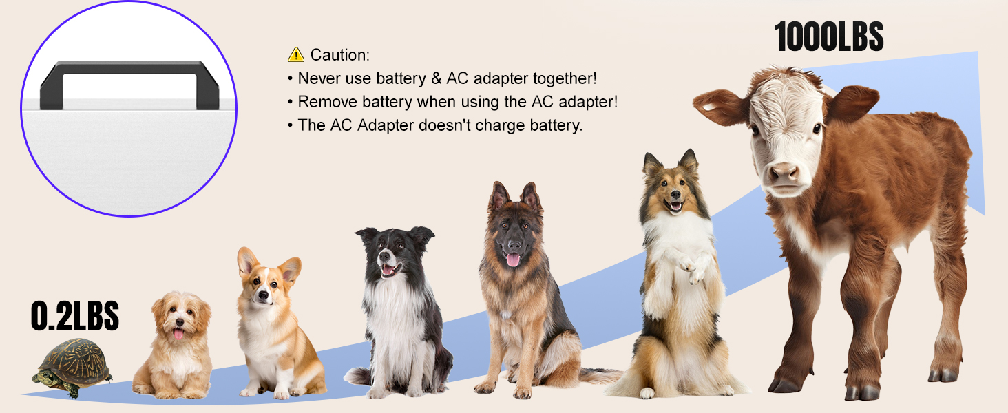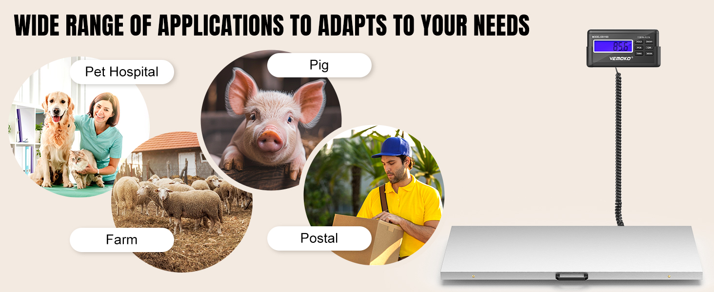 Modos Duales para Animales y Paqueteria: Versatilidad total. El Modo Animal estabiliza el peso de mascotas o ganado en movimiento (funcion Hold), mientras que el Modo Paquete ofrece precision para envios o carga estatica. Incluye funcion Tara para descontar el peso de cajas o jaulas y funcion de conteo para piezas a granel.