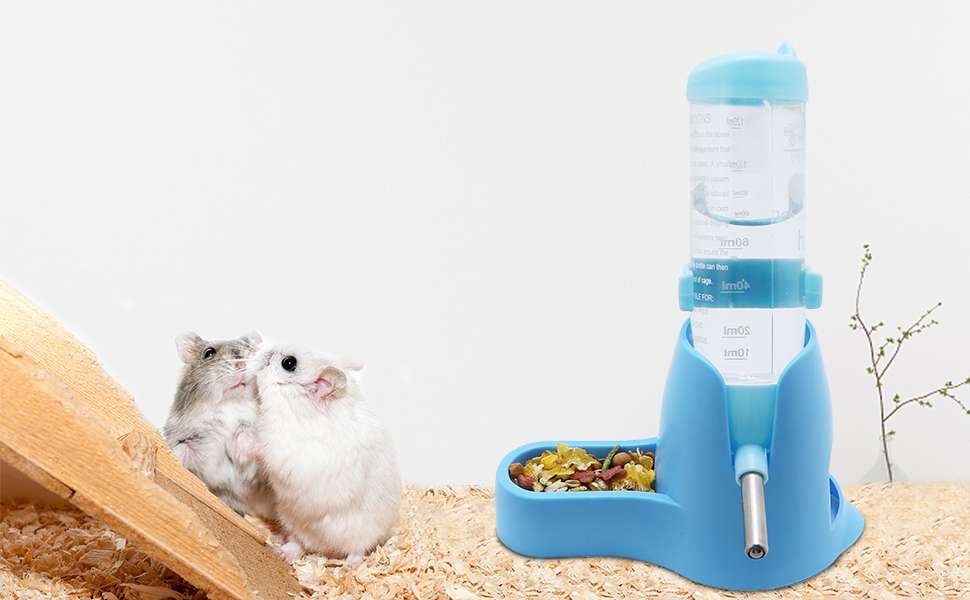 Multiusos La botella se puede fijar en una jaula superior con un diseño especial, y la base también puede ser un recipiente de comida para hámster.
