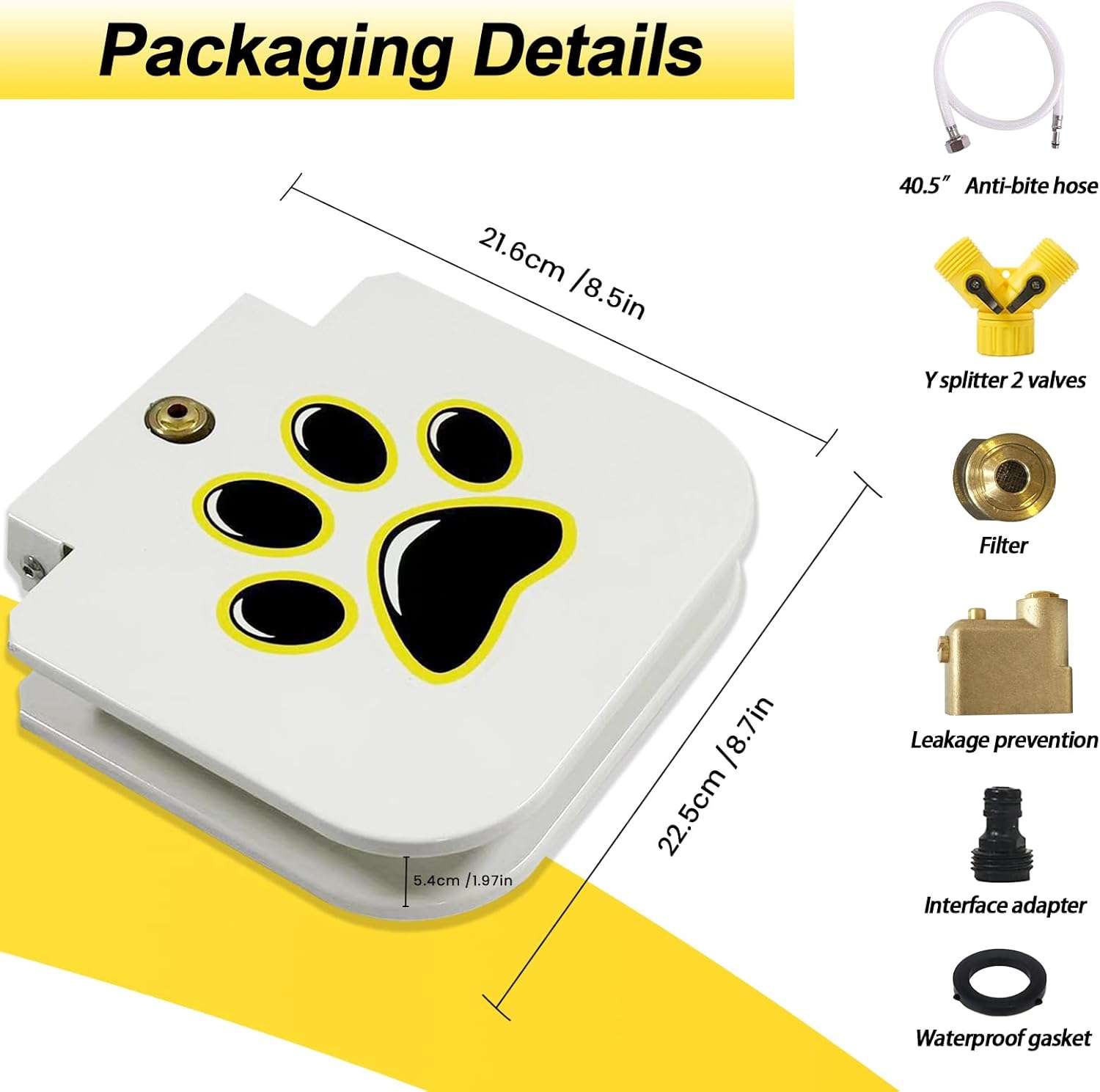 Instalacion Directa a la Manguera del Jardin Llegar e instalar sin herramientas especiales. Se conecta directo a tu manguera y cuenta con una valvula interna de cobre con filtro de malla metalica para que el agua salga siempre limpia libre de tierra o insectos. Su base tiene almohadillas de goma antideslizantes para que la estructura no se resbale mientras tu perro juega.
