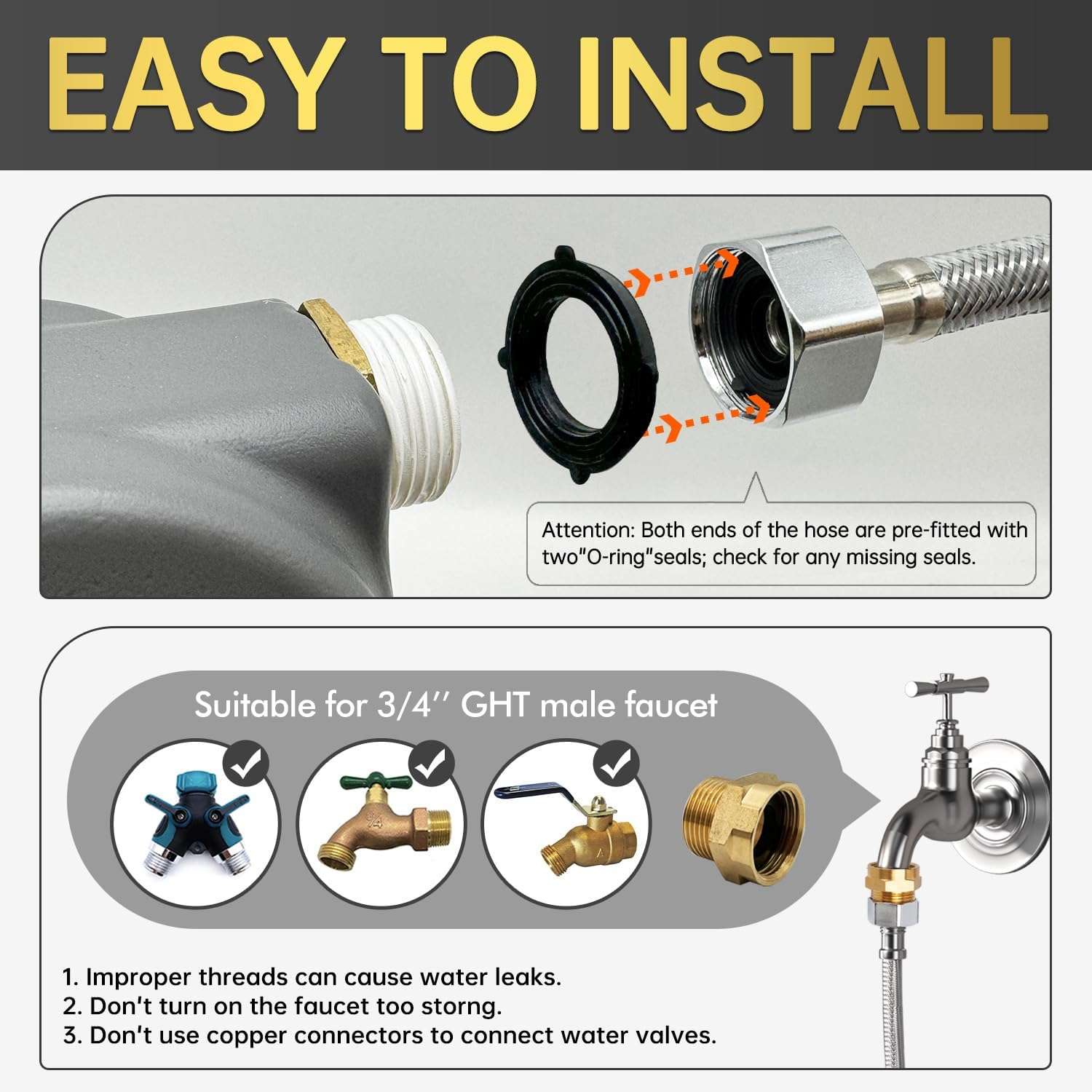 Kit de Instalacion Completo No necesitas viajes extra a la ferreteria. Este modelo destaca porque incluye absolutamente todo lo necesario para funcionar de inmediato: una manguera, cinta impermeable, conectores de cobre de alta calidad y un cepillo de limpieza. Todo adaptado para llaves de jardin estandar de tres cuartos de pulgada.