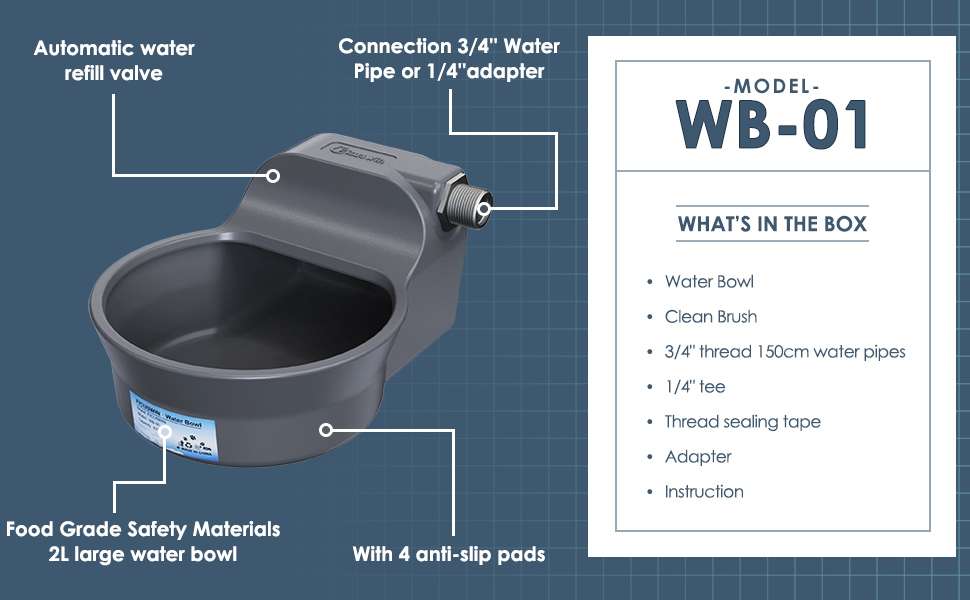 Sistema de Llenado Automatico Olvidate de rellenar el plato manualmente. Este bebedero cuenta con una valvula automatica interna muy eficiente. Cuando tu mascota bebe y el nivel baja, el sistema agrega agua por si solo hasta llegar al limite preestablecido, asegurando hidratacion constante mientras no estas en casa.