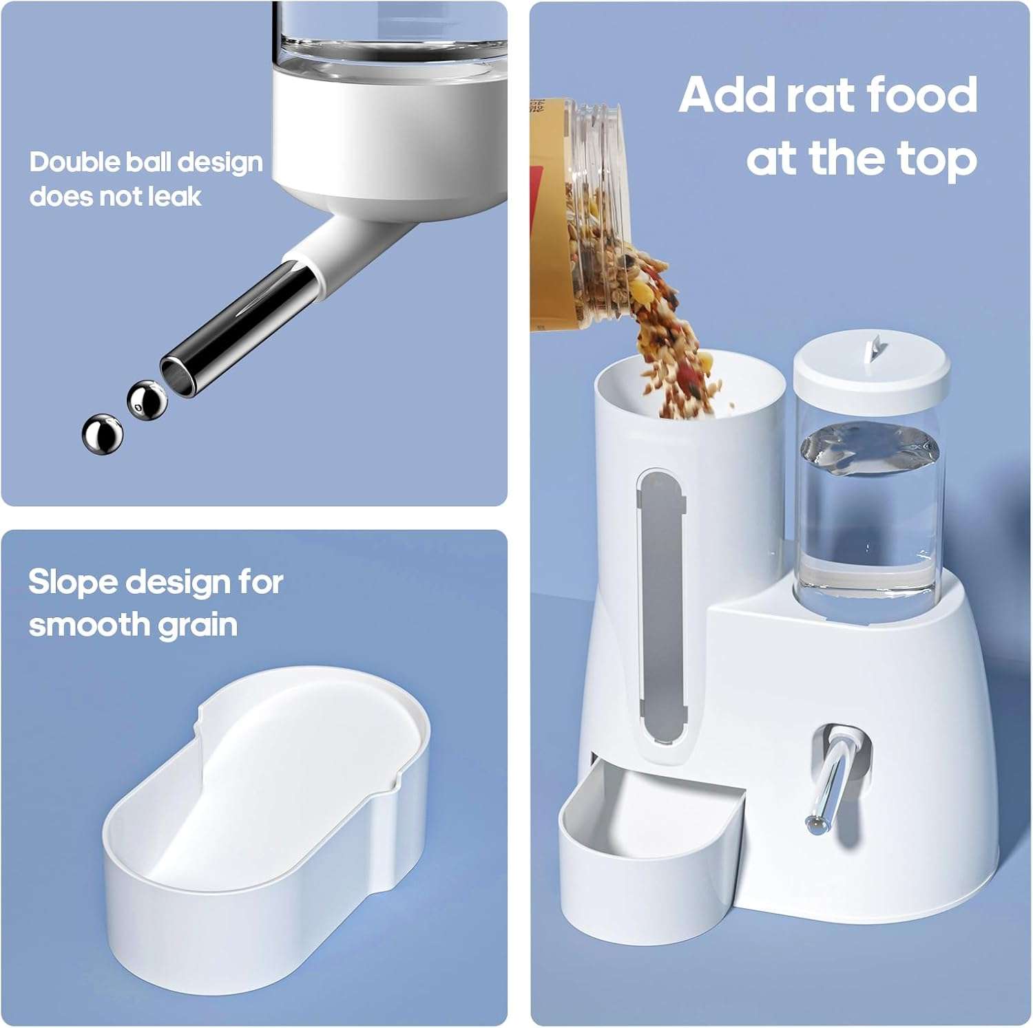 Diseño 2 en 1: esta botella de agua de animales pequeños 2 en 1 es adecuada para hámsteres enanos sirios, jerbos, ratas, ratones, erizos y otros animales pequeños, viene con dos funciones de botella de agua automática y alimentador automático.
