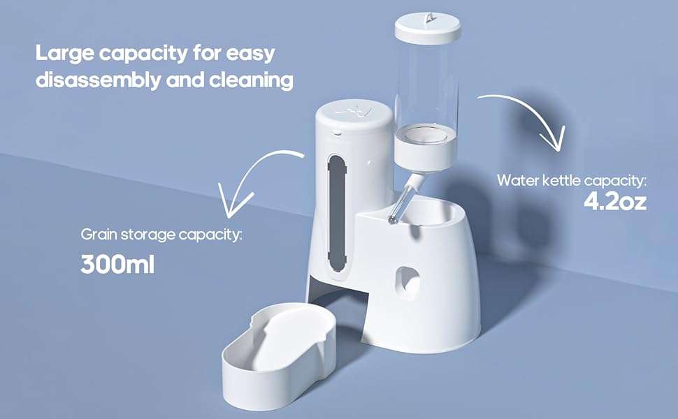 Capacidad: la capacidad de la botella de agua automática de hámster es de 4.2 onzas, la capacidad del alimentador automático de hámster es de 10.1 onzas.