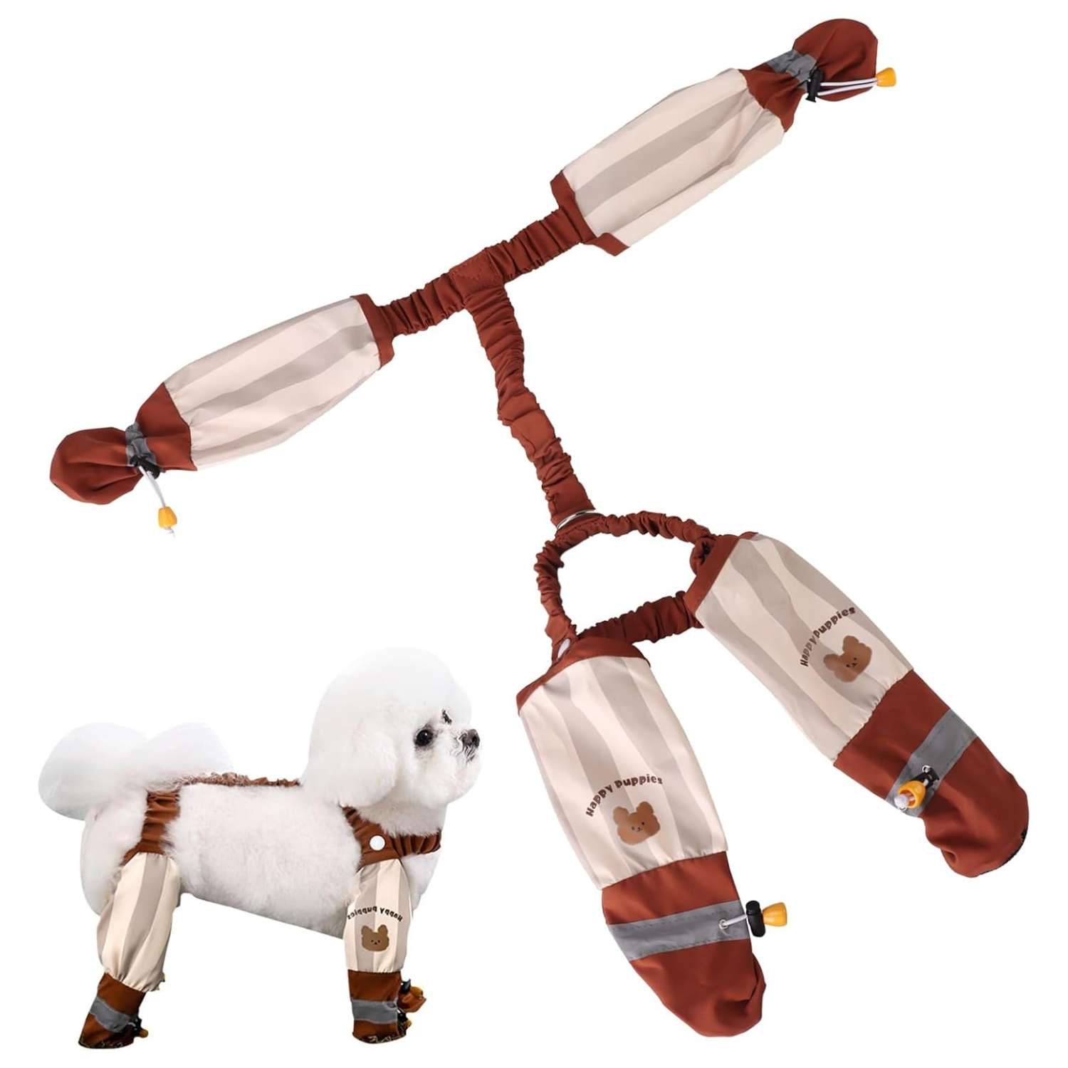 Cobertura Extendida: La tela impermeable sube por la pierna, protegiendo el pelaje de las salpicaduras, abrojos y suciedad. Es ideal para mantener limpias las patas de razas de pelo largo.