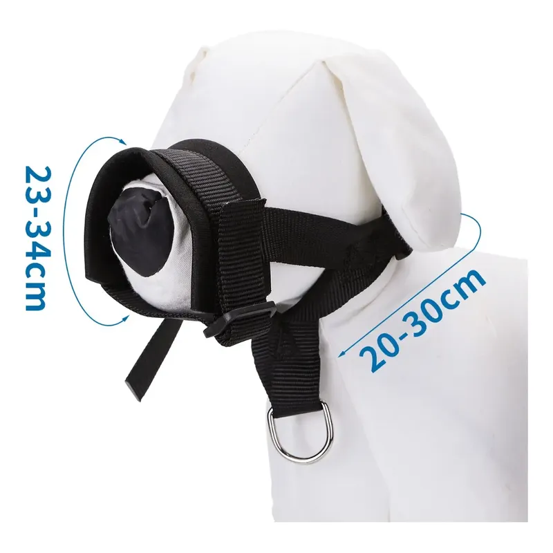 Ajuste Perfecto para Talla XL Cuenta con un sistema de correas de 2.5 cm de ancho que se adaptan facilmente a las medidas de tu mascota. La circunferencia del hocico se ajusta entre los 23 cm y 34 cm, mientras que la correa del cuello ofrece un rango de 20 cm a 30 cm. Esto te entrega un agarre firme y personalizado ideal para las razas mas grandes.