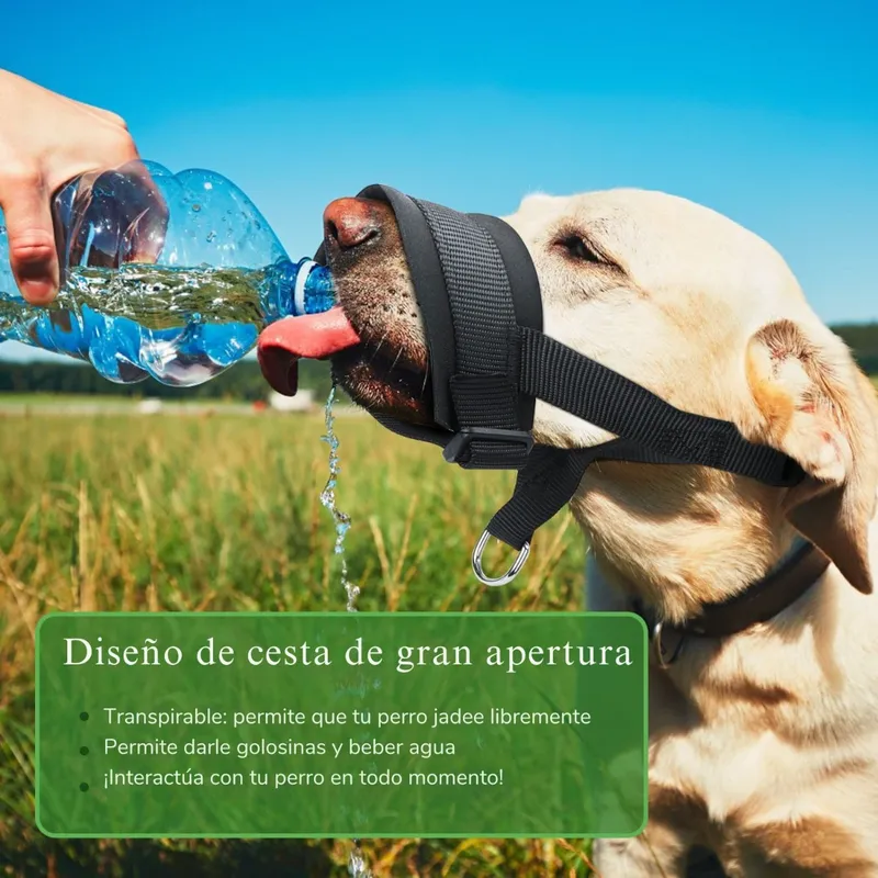 Diseno Inteligente y Seguro Su estructura esta pensada para el bienestar de tu animal. Permite que tu perro pueda jadear con normalidad para regular su temperatura corporal y beber agua sin problemas mientras lo usa, garantizando que sus paseos sean seguros y libres de estres.
