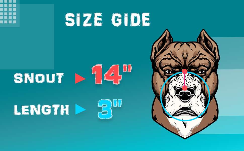 Mide la circunferencia (valor A en la segunda foto) y la longitud (valor B en la segunda foto) del hocico de tu perro para confirmar el tamaño. El hocico del perro mide 14 pulgadas. La longitud del hocico del perro es de 3 pulgadas.