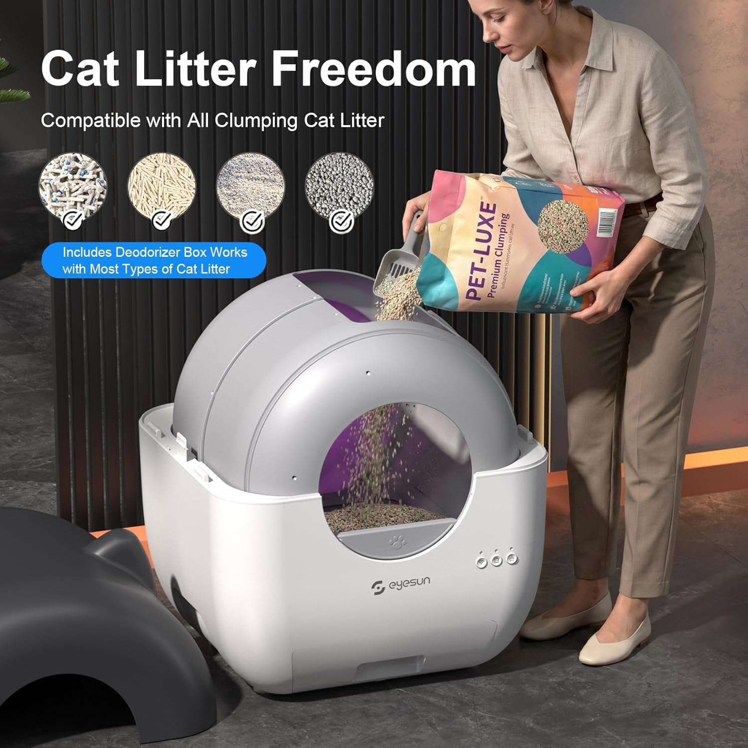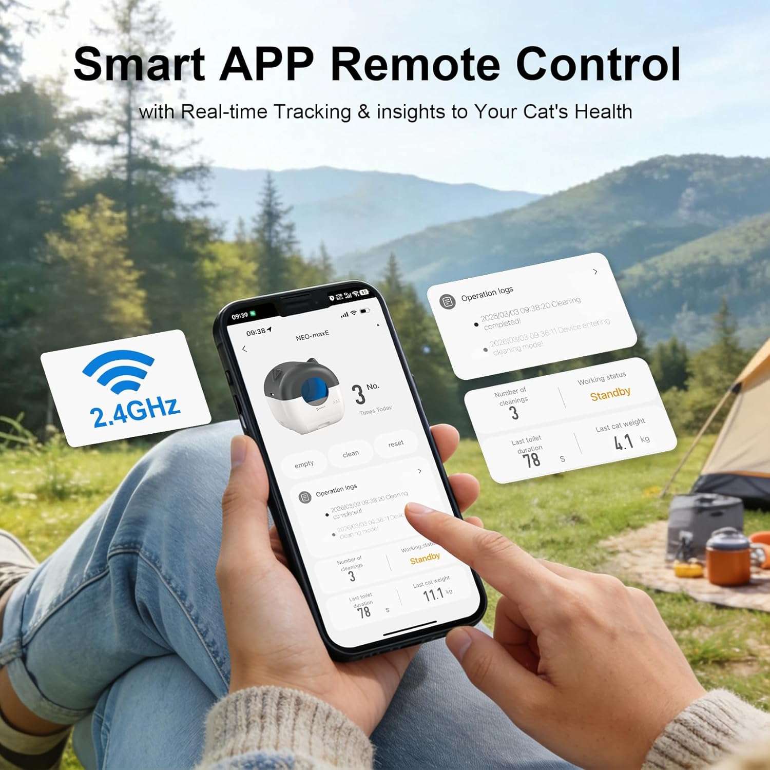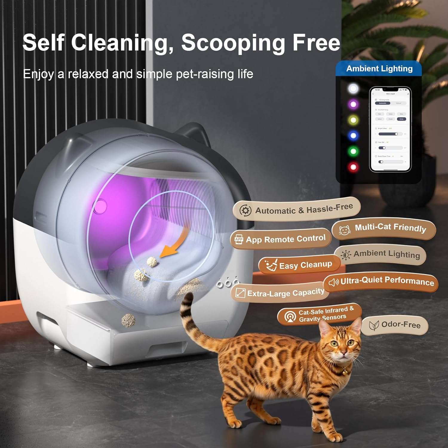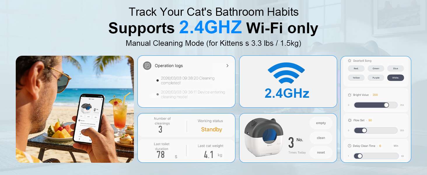 Gracias a su conexion wifi usted puede administrar la limpieza facilmente desde cualquier lugar utilizando su aplicacion movil Esta avanzada tecnologia le permite monitorear el uso recibir notificaciones en tiempo real y controlar los ciclos de limpieza de forma remota Ademas su funcionamiento es ultra silencioso emitiendo unicamente 35 decibeles siendo perfecto para mantener un ambiente tranquilo que no perturbara su sueño ni el descanso de su mascota durante la noche