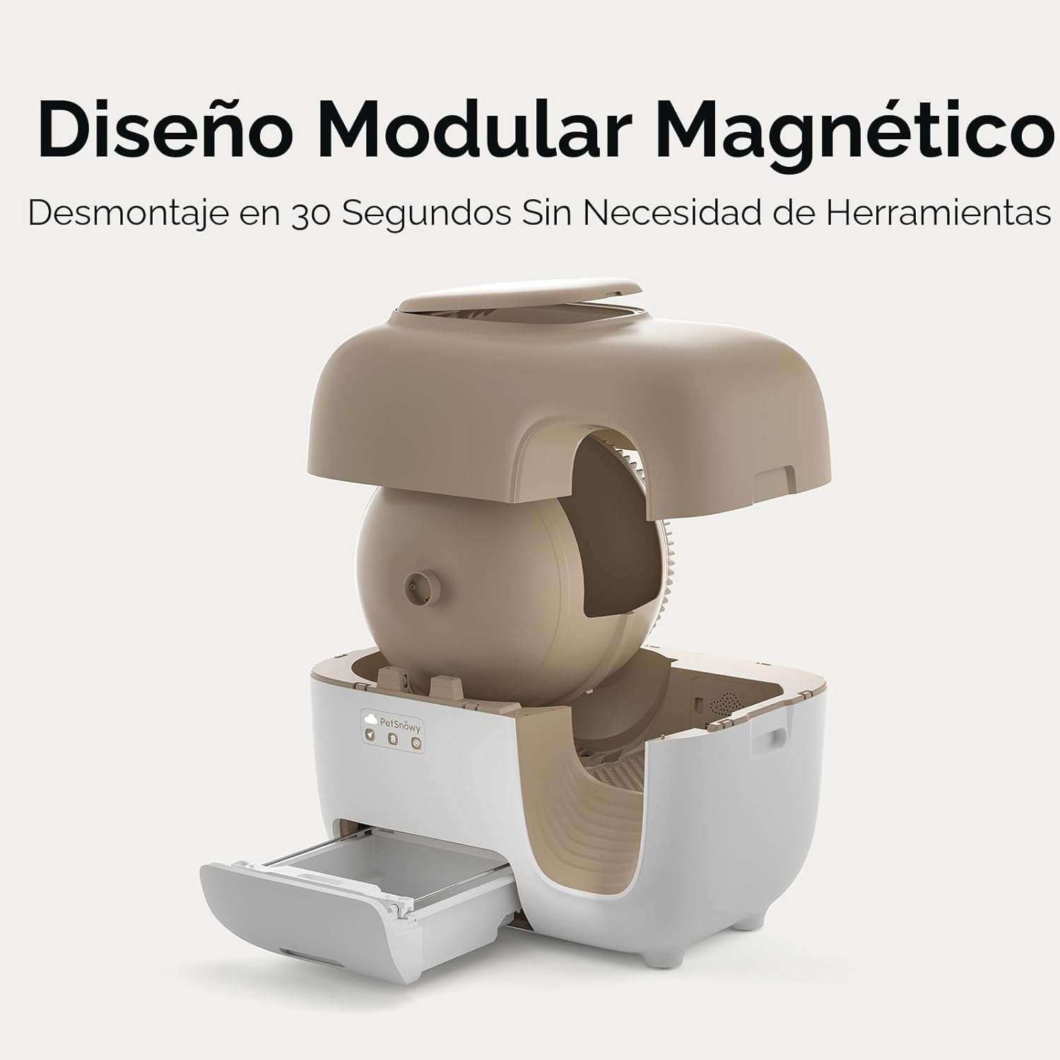 Esta avanzada caja de arena automatica y autolimpiable es la opcion inteligente mas buscada en Chile para el cuidado de felinos grandes o para hogares con multiples gatos Su estructura moderna cuenta con dimensiones exactas de 79 centimetros de largo 53 centimetros de ancho y 69 centimetros de alto ofreciendo un diseño modular que permite un montaje rapido una limpieza sumamente facil y un mantenimiento minimo perfecto para dueños de mascotas muy ocupados