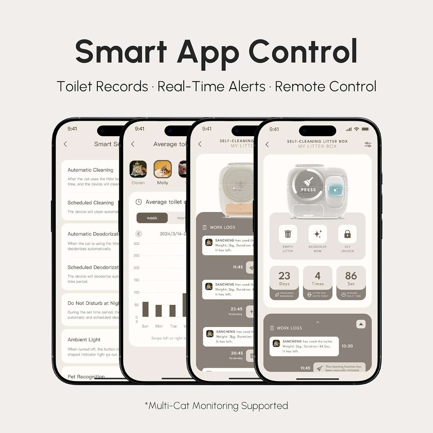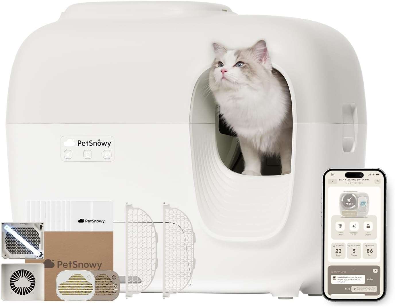 El equipo destaca por su innovador sistema de control avanzado de olores impulsado por tecnologia especial que neutraliza rapidamente los olores desagradables manteniendo el ambiente de su hogar siempre fresco y muy acogedor Ademas cuenta con una funcion de sellado automatico de residuos que recoge y empaqueta sin esfuerzo los desechos en bolsas desechables permitiendole omitir la recoleccion diaria y disfrutar de un arenero impecable