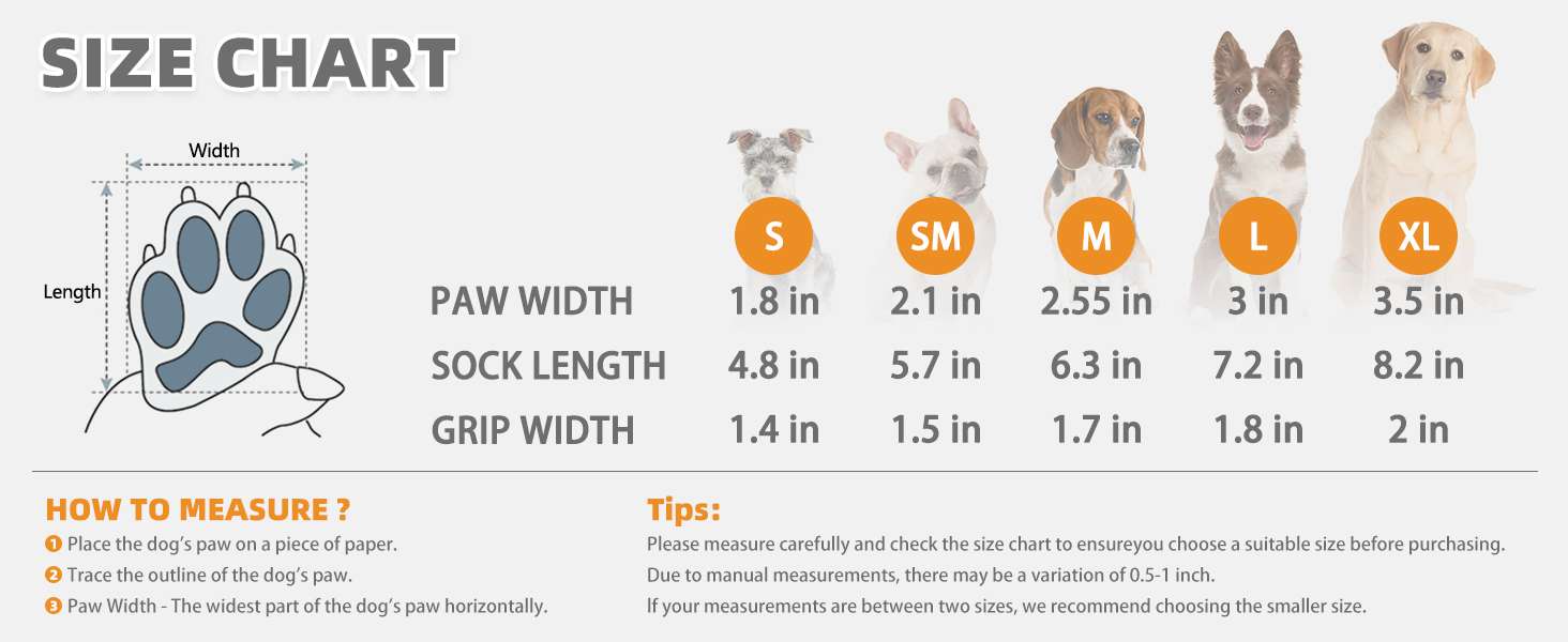 Instrucciones: Mide el ancho de la pata de tu perro pisando un papel (con peso). Elige la talla según el Ancho.