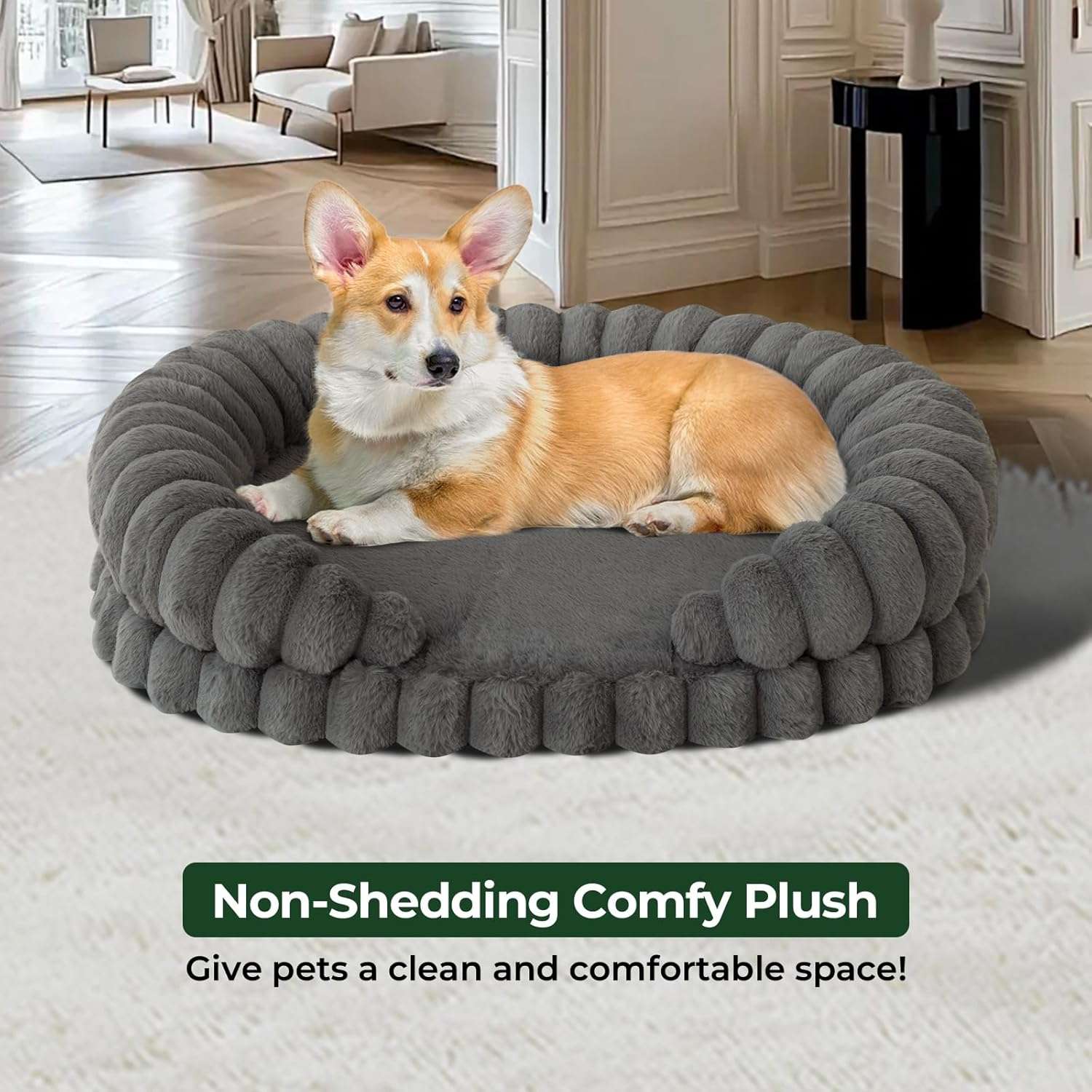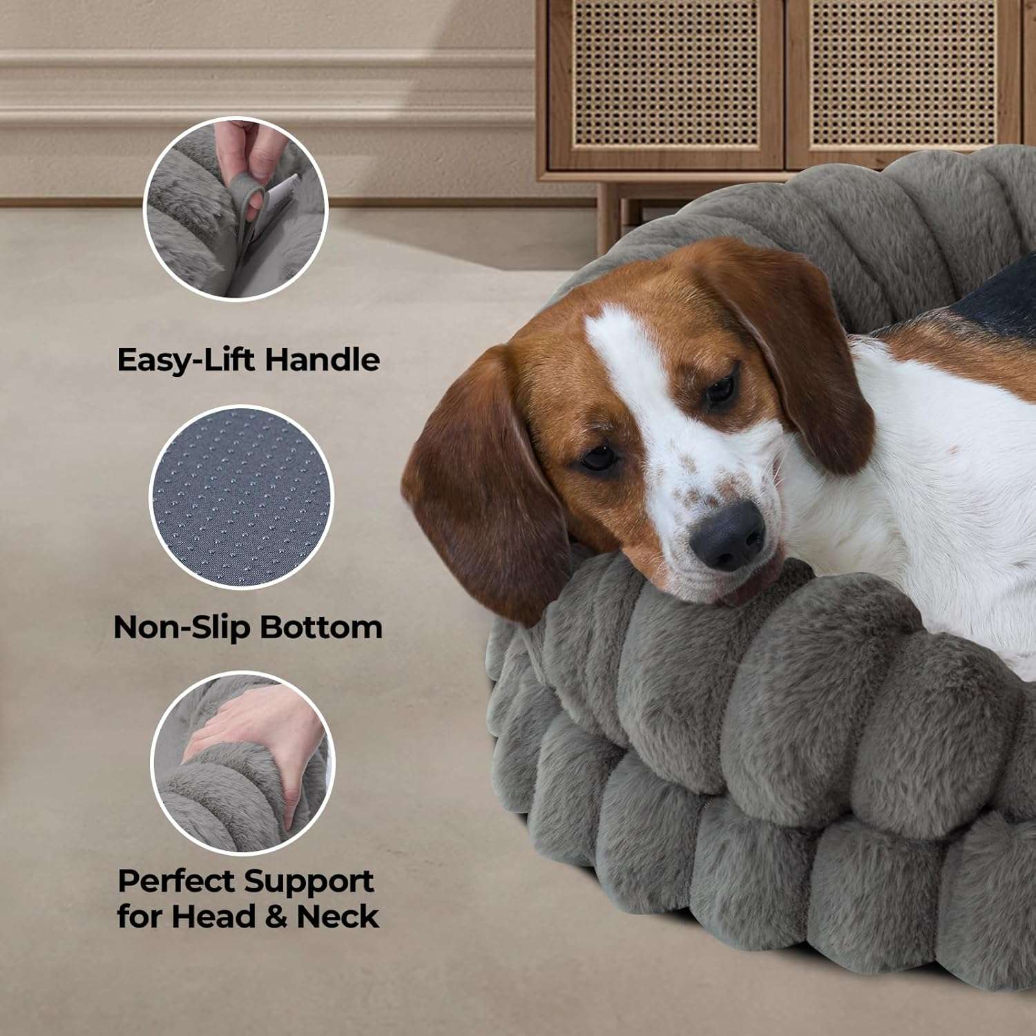 Base Segura Antideslizante: La parte inferior de la cama es antideslizante, asegurando que se mantenga estable en pisos de madera o baldosas, lo que garantiza la seguridad de su mascota al moverse.