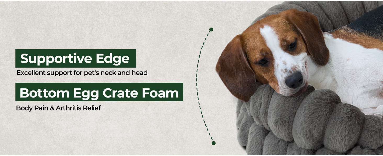 Diseño de Nido y Forma de ‘C’: La forma ovalada y el cómodo borde de apoyo envuelven a su mascota, adaptándose perfectamente a quienes aman acurrucarse. Esta sensación de “nido” es ideal para reducir el estrés y la ansiedad, haciendo que su perro se sienta seguro y cómodo.