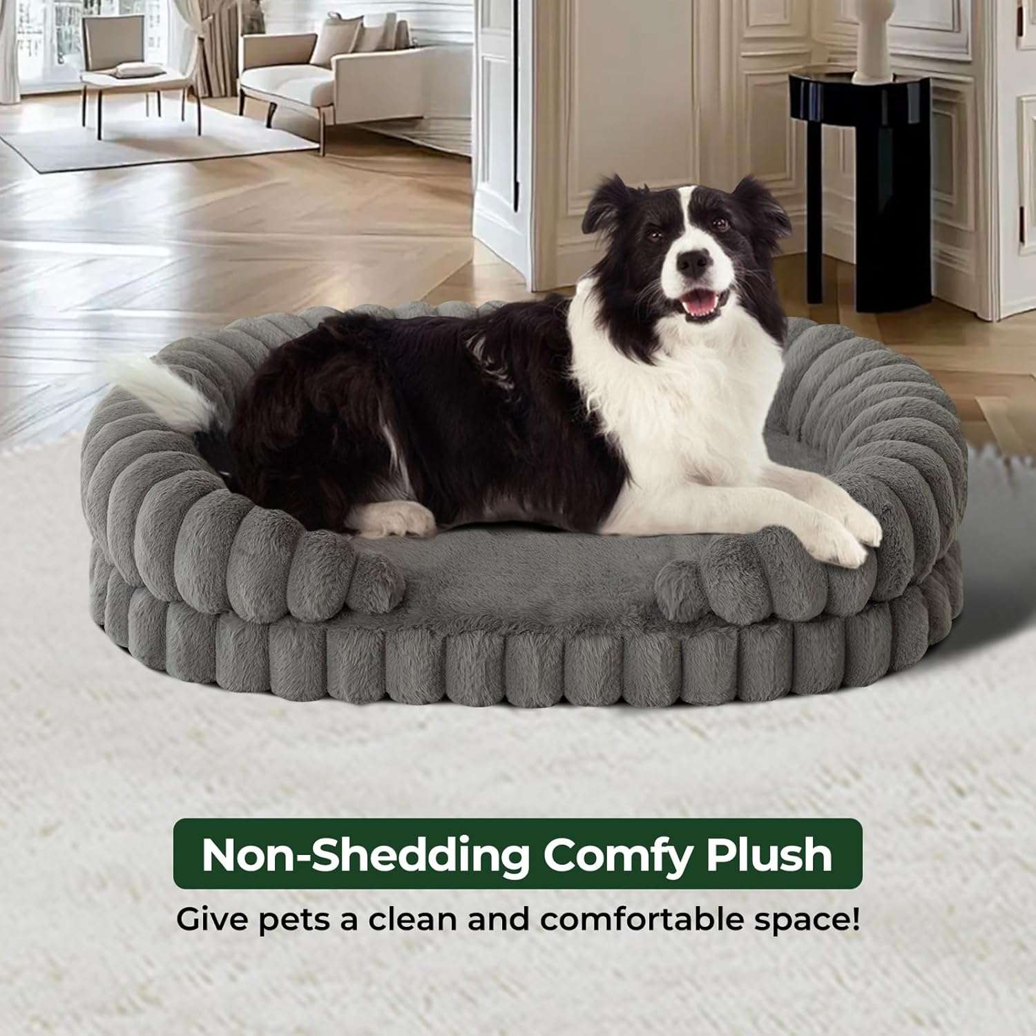 Esta cama redonda y calmante ha sido diseñada para proporcionar un refugio de seguridad y un soporte de salud excepcional, promoviendo un sueño profundo y reparador, especialmente para perros grandes de hasta (60 libras), como Huskies, Border Collies y Pastores Australianos.