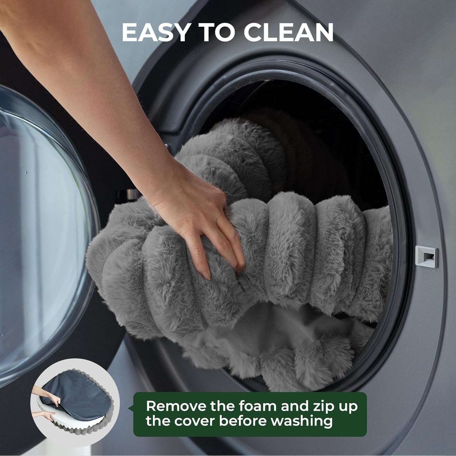 Fácil Limpieza: Gracias a su cojín extraíble, el mantenimiento es sencillo. La cama es completamente lavable a máquina (agua fría, ciclo suave), facilitando su restauración a un estado como nuevo.