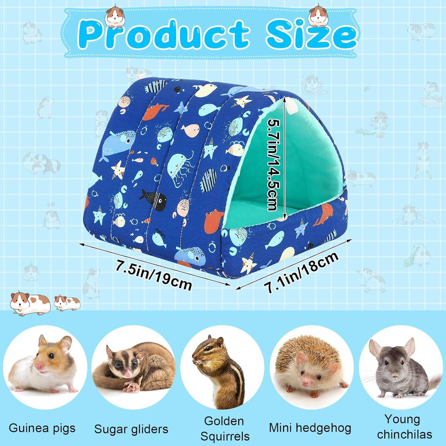 Tamaño suficiente: 6.8 x 7.4 pulgadas, muy adecuado para animales pequeños como cobayas, hámsters, ratas, chinchillas, hurones, conejos enanos, etc. Recuerda medir las especificaciones de tamaño para evitar cualquier problema de tamaño