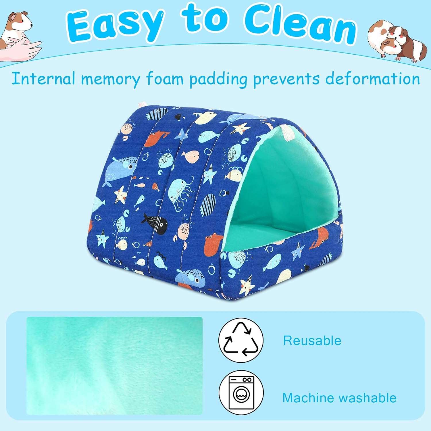 Lavable a máquina: esta casa de cama de conejillo de indias es lavable a máquina, el escondite de vellón está hecho de tela de buena calidad, lo que hace que el escondite de conejillo de indias sea fácil de limpiar. Y el relleno interno de algodón PP garantiza que la cama de conejillo de indias pueda permanecer en posición vertical incluso después de múltiples lavados
