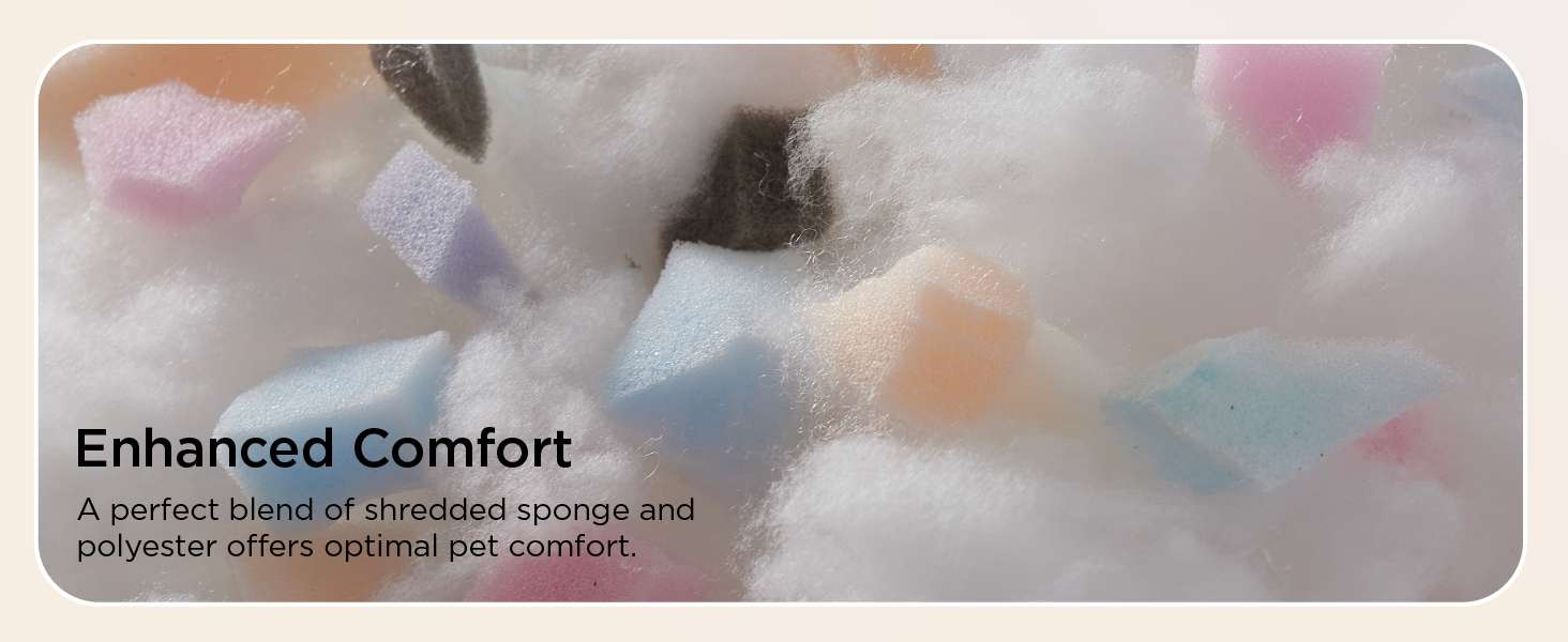 Materiales Certificados y Seguros: Fabricada con suave forro polar sherpa y con certificación OEKO-TEX, esta cama es segura y acogedora. Además, la base antideslizante añade estabilidad y seguridad en cualquier tipo de suelo.
