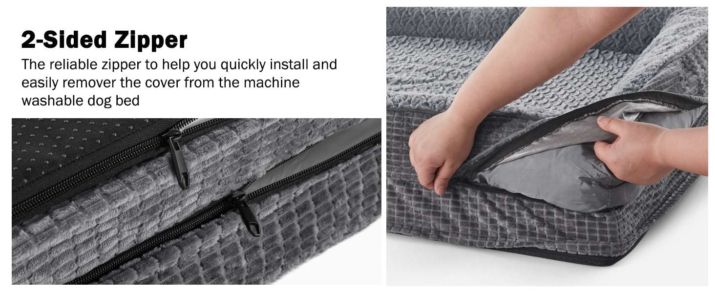 Lavado Fácil y Rápido: La funda es completamente extraíble gracias a su doble cremallera y es apta para lavadora y secadora (ciclo suave), asegurando que el espacio de su perro se mantenga siempre fresco e higiénico.
