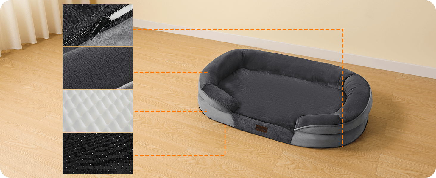 Diseñada pensando en el bienestar de tu compañero, nuestra cama ofrece un soporte superior especialmente vital para perros adultos mayores o con problemas articulares.