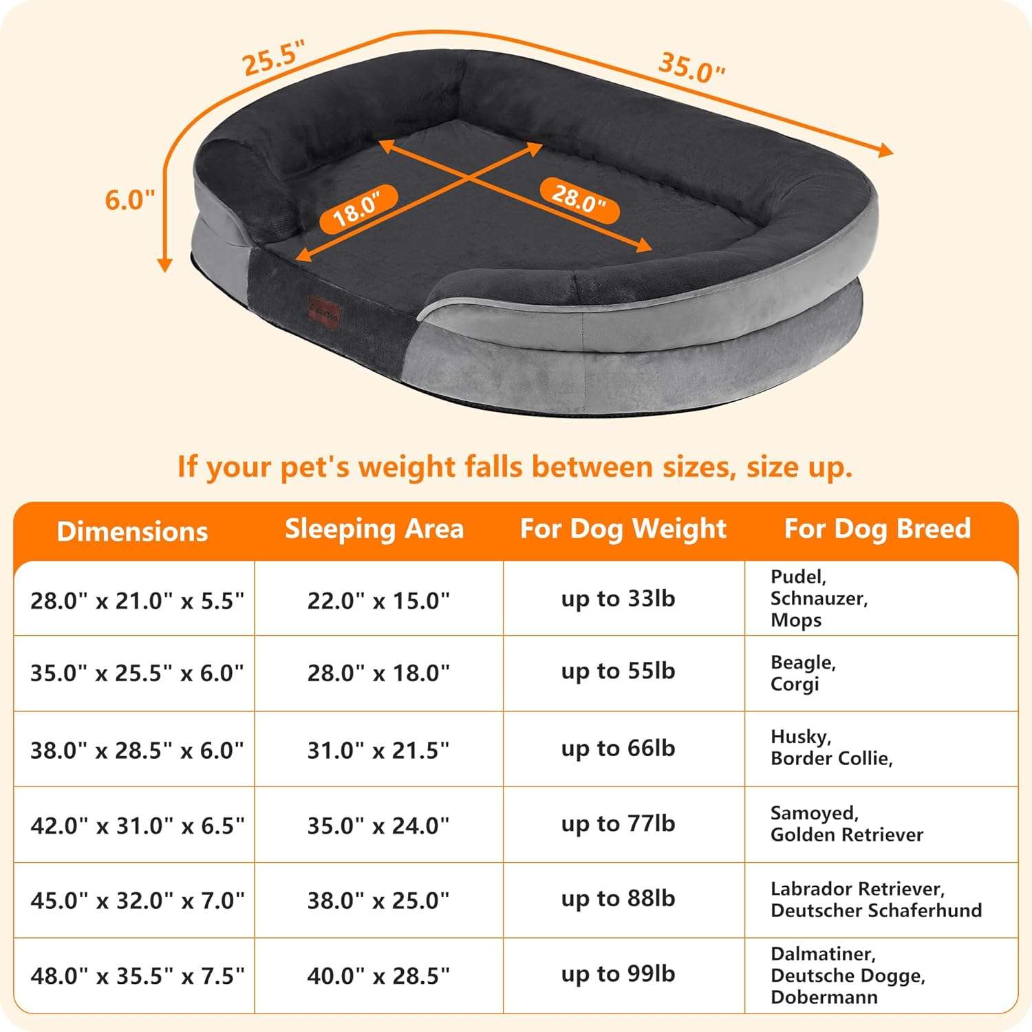 ¡Ofrecemos 6 tamaños para asegurar un ajuste perfecto! Mida y elija el tamaño correcto para darle a su amigo peludo la experiencia de sueño superior que se merece.