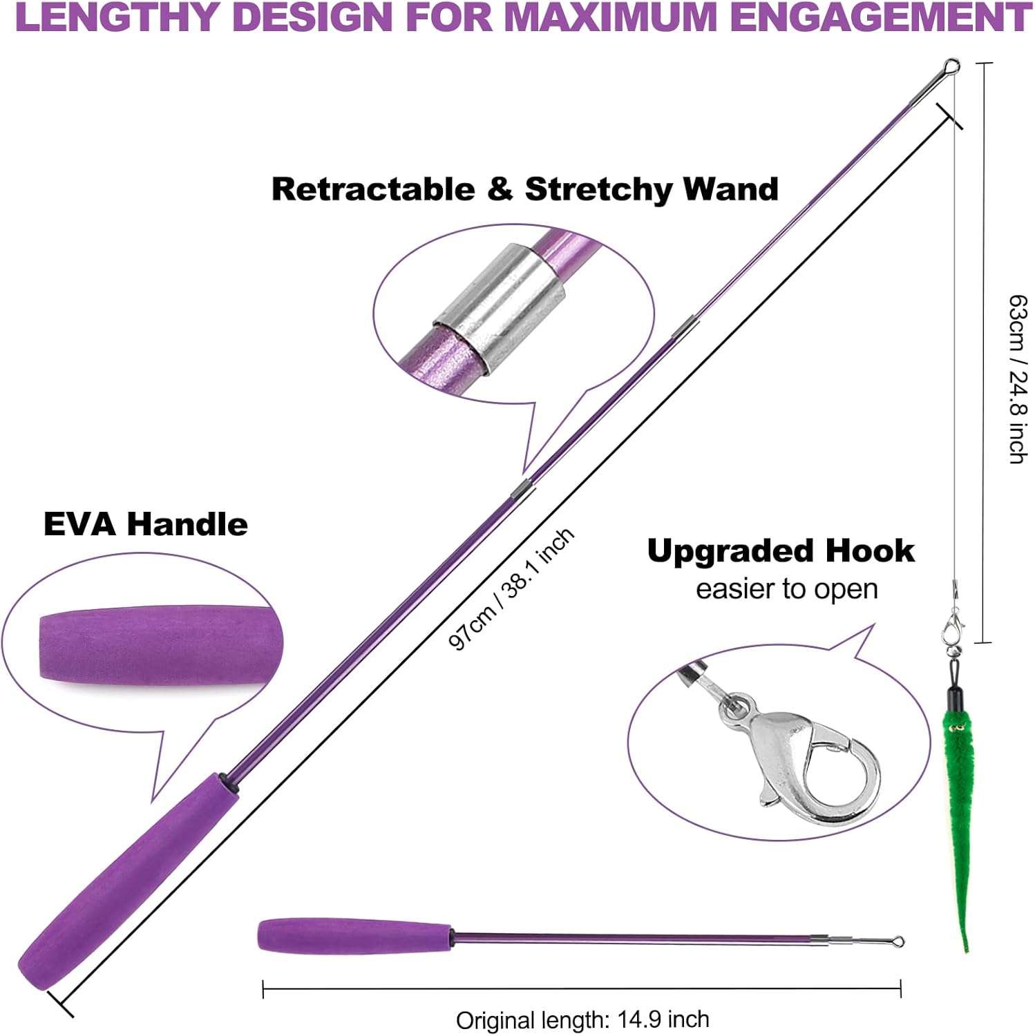 Este completo paquete de juguetes interactivos para gatos es la opcion mas buscada en Chile para brindar entretenimiento prolongado a su mascota de interior El set incluye dos varitas retractiles siete repuestos en forma de gusano y una linea de repuesto ofreciendo todos los accesorios necesarios para evitar el aburrimiento y mantener a su felino siempre estimulado
