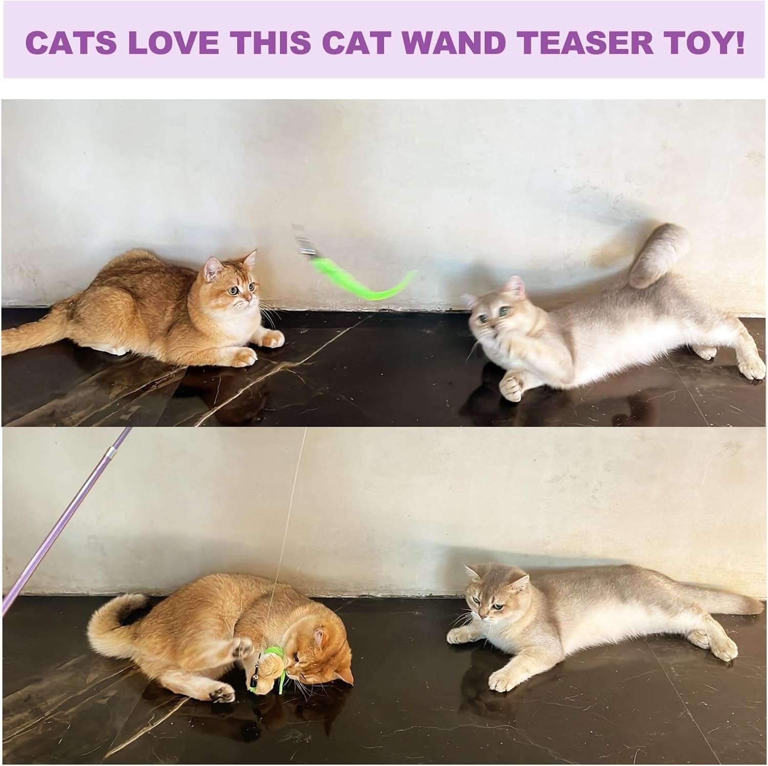 Pensando en su total comodidad la varita incorpora un mango de espuma que protege sus manos permitiendole jugar por mucho mas tiempo sin sentir cansancio Ademas considerando el desgaste natural por los tirones constantes el paquete incluye una linea de repuesto adicional asegurando la durabilidad del set Como recomendacion general le sugerimos siempre supervisar a sus gatos mientras interactuan con estos accesorios