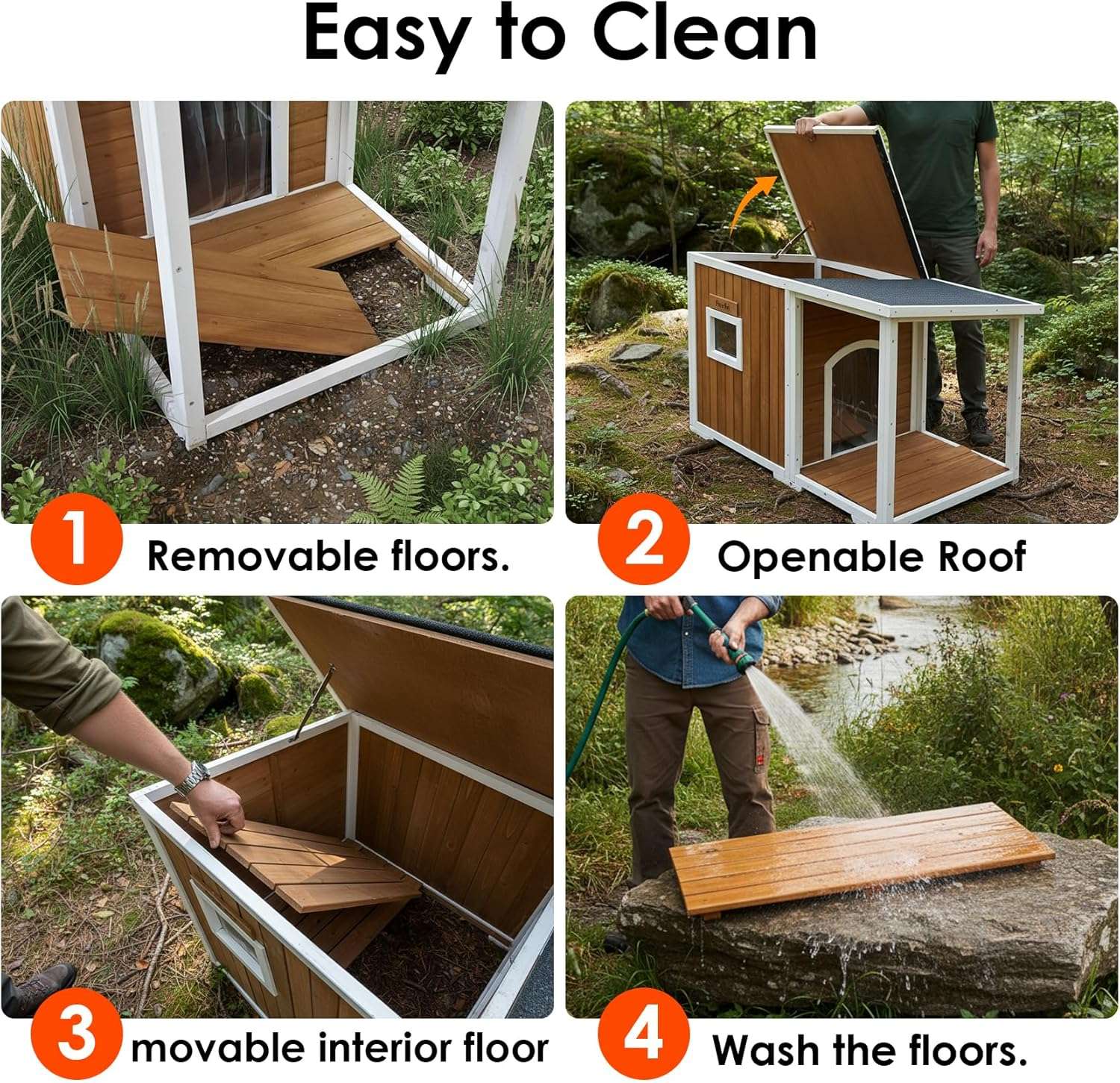 Pensando en su comodidad este refugio es sumamente facil de ensamblar en pocos minutos Ademas mantener un hogar fresco y limpio para su mascota no requiere esfuerzo gracias a su techo abatible y su piso extraible que permiten una limpieza rapida y sin estres utilizando materiales ecologicos y seguros para proteger la salud de su familia y el medio ambiente