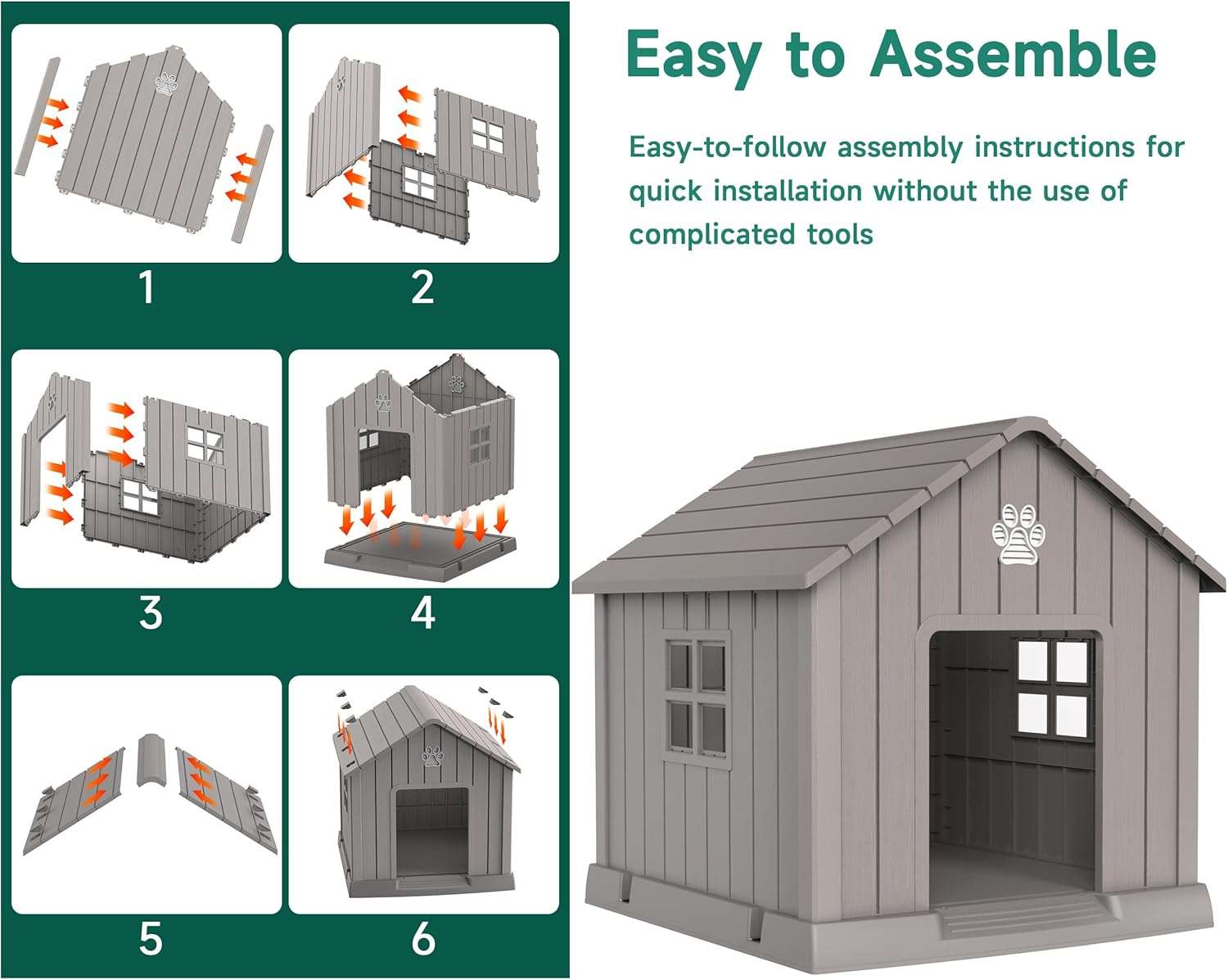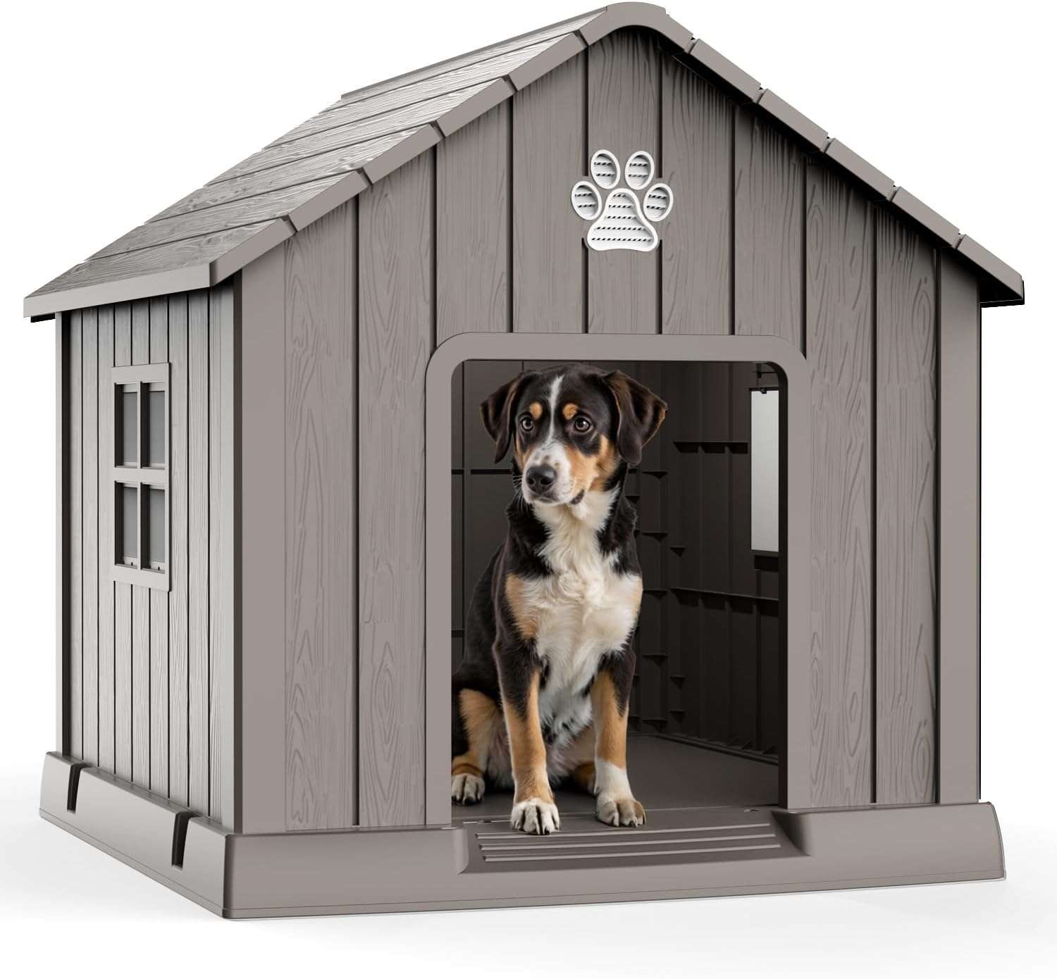 Tamaño Extra Grande: 103 cm de profundidad x 96 cm de ancho x 98 cm de alto (40.87″ x 37.8″ x 38.82″). Diseñada específicamente para perros de gran envergadura, como pastores alemanes o labradores, ofreciendo una verdadera mansión en tu patio.