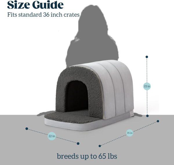 Se adapta a jaulas estándar: la casa interior para perros es compatible con jaulas para perros de 36 pulgadas de largo y funciona perfectamente como una cama cubierta independiente para perros. La cama para perros con cueva de cubierta es ideal para razas de perros grandes que pesan hasta 41 a 65 libras